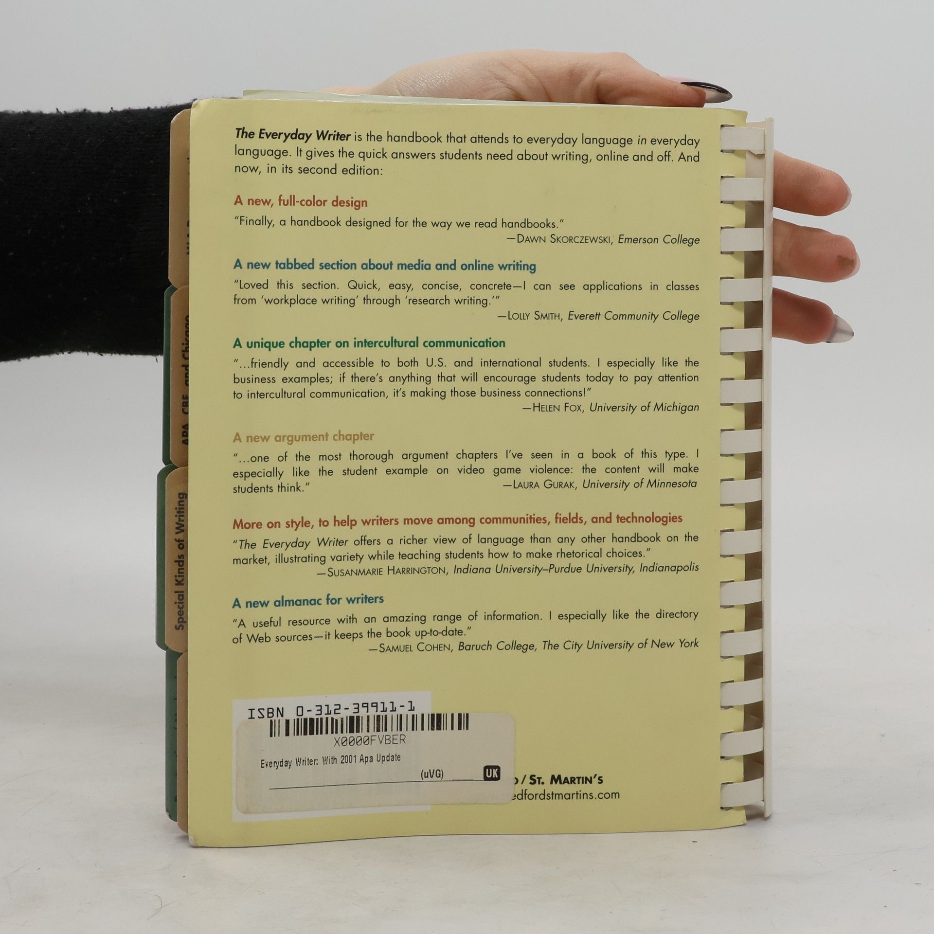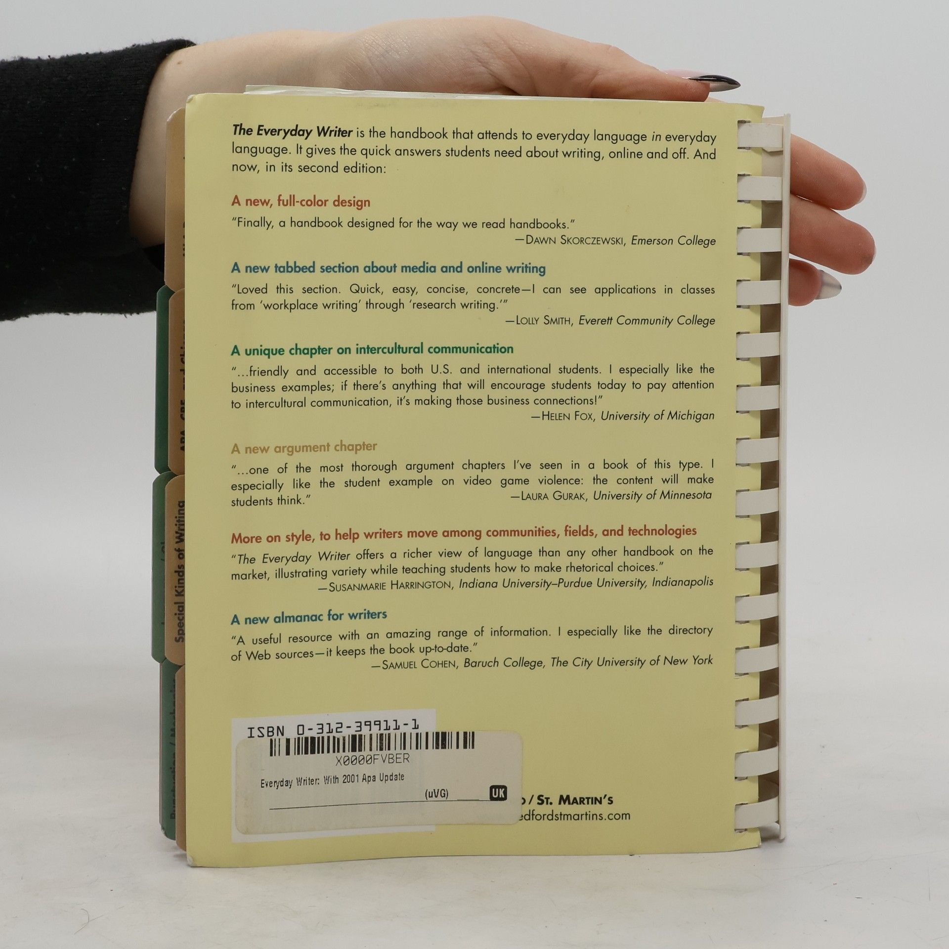 Andrea Lunsford’s research shows that students are writing more than ever — in classrooms, workplaces, and social spaces, in local communities and around the world. <i>The Everyday Writer</i>, Fifth Edition, is the first tabbed handbook to help the participants in this "literacy revolution" build on the smart decisions they make as social writers — and use their skills in their academic and professional work. With Andrea Lunsford’s trademark attention to rhetorical choice and language, and with new chapters on public writing, critical reading, and understanding how and why to use documentation, <i>The Everyday Writer</i> gives today’s students the information they need to be effective, ethical writers. New illustrations by graphic artist G.B. Tran make complicated concepts clear and inviting for students.