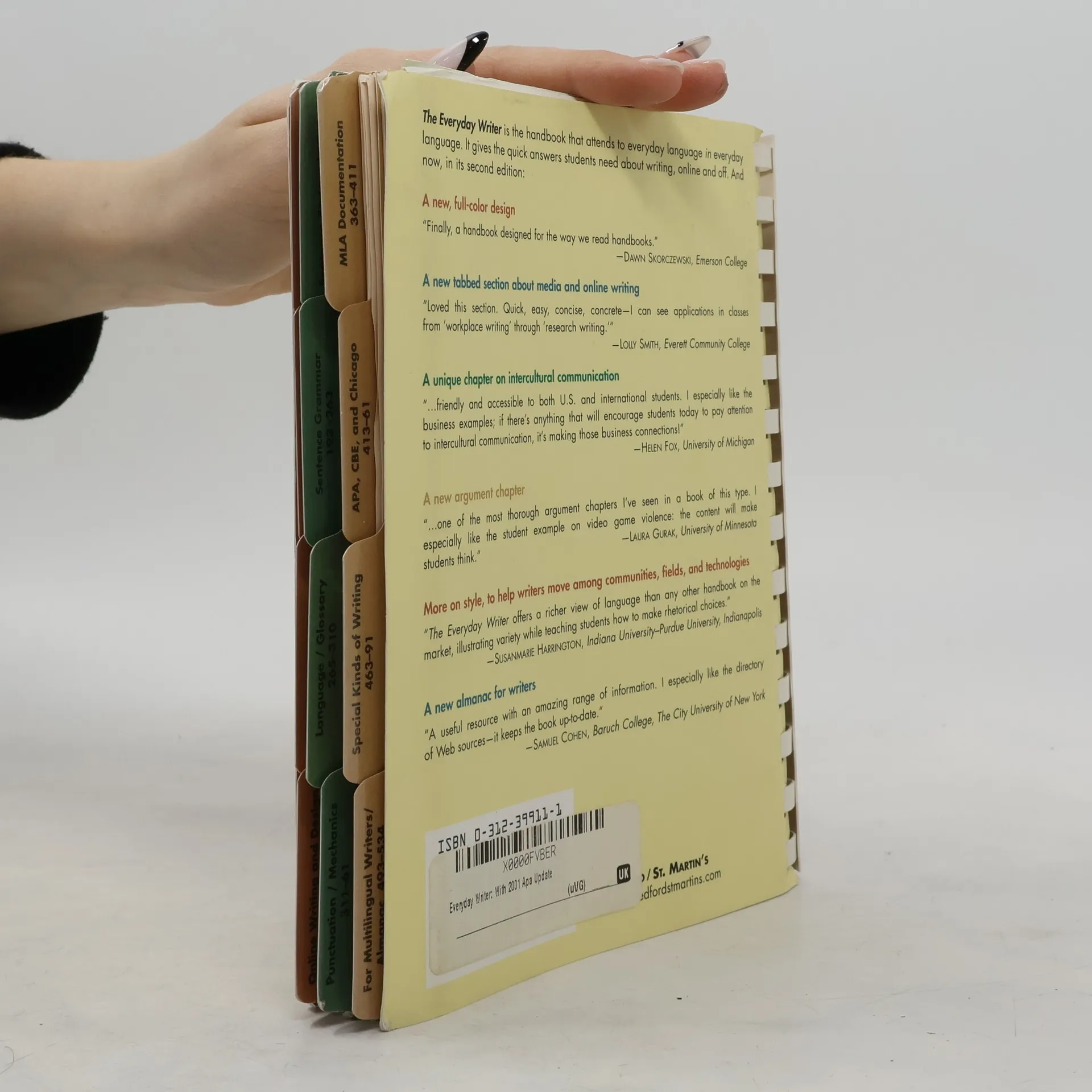 Andrea Lunsford’s research shows that students are writing more than ever — in classrooms, workplaces, and social spaces, in local communities and around the world. <i>The Everyday Writer</i>, Fifth Edition, is the first tabbed handbook to help the participants in this "literacy revolution" build on the smart decisions they make as social writers — and use their skills in their academic and professional work. With Andrea Lunsford’s trademark attention to rhetorical choice and language, and with new chapters on public writing, critical reading, and understanding how and why to use documentation, <i>The Everyday Writer</i> gives today’s students the information they need to be effective, ethical writers. New illustrations by graphic artist G.B. Tran make complicated concepts clear and inviting for students.