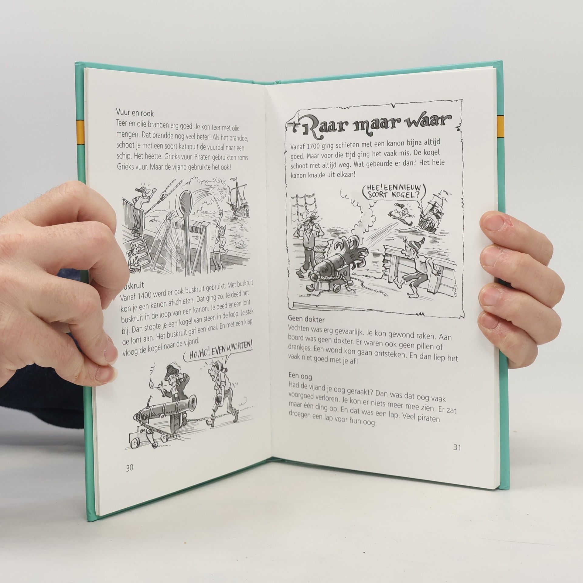 Yo landrotten en zeeschuimers!De bekende piraat Knoert-met-het-houten-been schreef ooit een zeer geheim handboek voor zeerovers. Daarin stond alles wat je moest weten om een goede piraat te worden. Maar het boek was zó geheim, dat hij het met onzichtbare inkt schreef. Niemadn heeft het boek daarom ooit kunnen lezen!Wil je toch alles weten over piraten?Lees dan dit boek. Dan kom je te weten- Waarom veel piraten een lap voor hun oog droegen...- Wat voor vlag piraten hadden...- En waar de wc was op een piratenschip (nergens dus!)