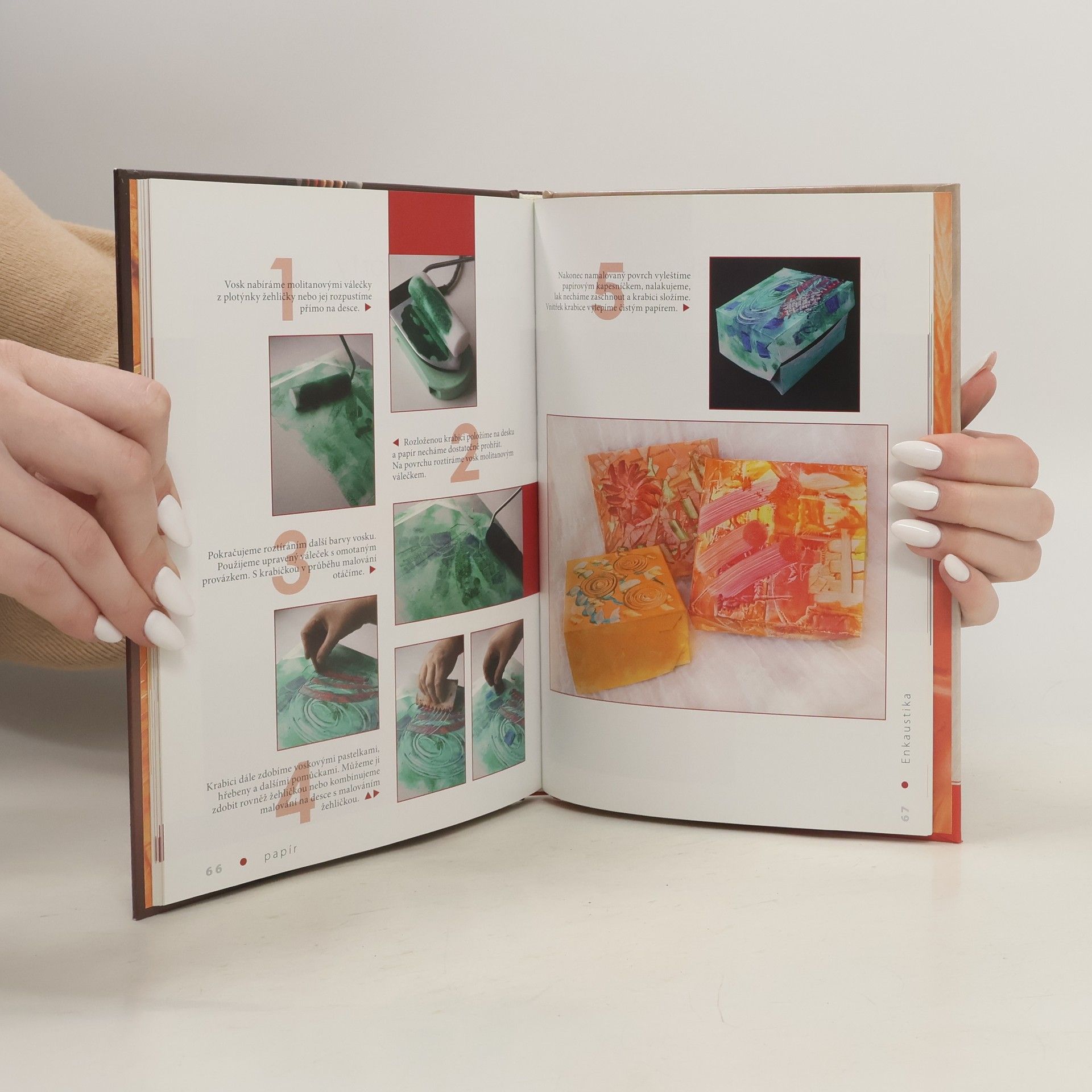 Tato kreativní kniha vám představí specifika techniky enkaustiky, při jejíž tvorbě se rozpuštěný barevný vosk pomocí speciálních enkaustických pomůcek (žehlička, pero, enkaustická deska apod.) nanáší na nejrůznější povrchy (papír, textil, dřevo, sklo, keramika, PVC apod.). Autorka vás seznámí s potřebnými pomůckami i materiály a poté se již bude věnovat jednotlivým enkaustickým technikám a 12 konkrétním projektům.