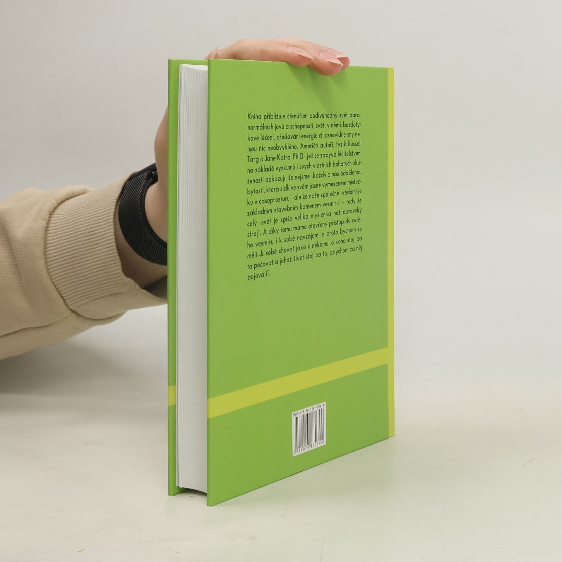 Kniha přibližuje čtenářům podivuhodný svět paranormálních jevů a schopností, svět, v němž bezdotykové léčení, předávání energie či jasnovidné sny nejsou nic neobvyklého. Američtí autoři, fyzik Russell Targ a Jane Katra, Ph.D., jež se zabývá léčitelstvím, na základě výzkumů i svých vlastních bohatých zkušeností dokazují, že nejsme „každý z nás oddělenou bytostí, která sídlí ve svém jasně vymezeném místečku v časoprostoru“, ale že naše společné „vědomí je základním stavebním kamenem vesmíru“ – tedy že celý „svět je spíše veliká myšlenka než obrovský stroj“.