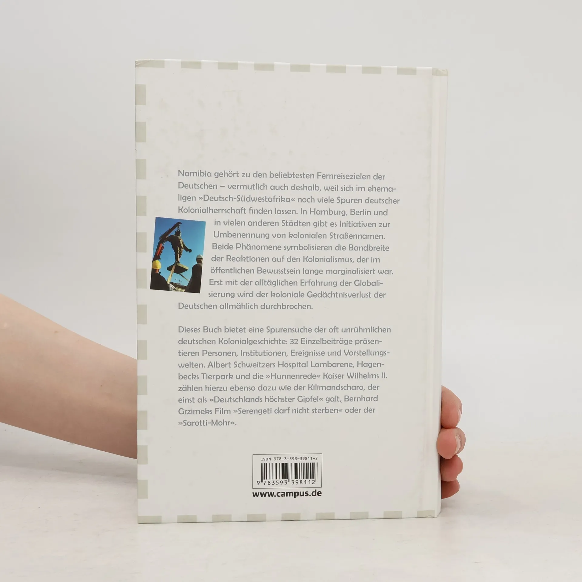 Namibia gehört heute zu den beliebtesten Fernreisezielen der Deutschen – vielleicht auch deshalb, weil es einst als »Deutsch-Südwestafrika« Kolonie war. Die Erfahrung von Tourismus und Globalisierung rückte in den vergangenen Jahren den europäischen Kolonialismus, der auch die deutsche Geschichte weit stärker als gemeinhin angenommen prägte, ins allgemeine Bewusstsein. Dieser Band legt eine Bilanz der Spurensuche nach Erinnerungsorten der oft unrühmlichen deutschen Kolonialgeschichte vor. In 30 Einzelbeiträgen präsentiert es Personen, Institutionen, Ereignisse und Vorstellungswelten: Albert Schweitzers Hospital Lambaréné, Hagenbecks Tierpark und die »Hunnenrede« Kaiser Wilhelms II. zählen hierzu ebenso wie der Berg Kilimandscharo, den der Deutsche Hans Meyer als erster Europäer bestieg, Bernhard Grzimeks Film »Serengeti darf nicht sterben« oder der »Sarotti-Mohr«. Ein unentbehrliches Buch für alle, die am deutschen Kolonialismus und am deutschen kollektiven Gedächtnis interessiert sind!