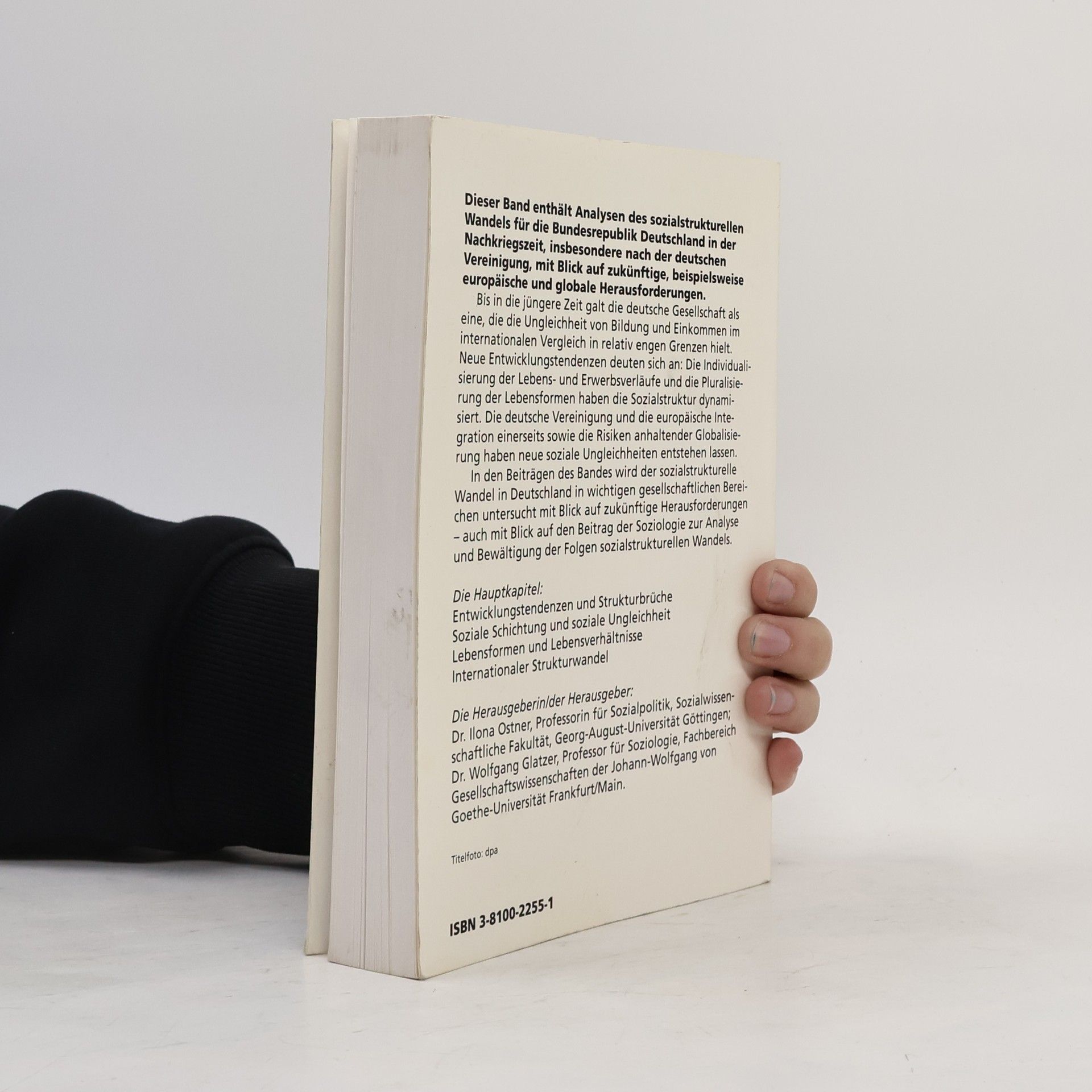 Dieser Band enthält Analysen des sozialstrukturellen Wandels für die Bundesrepublik Deutschland in der Nachkriegszeit, insbesondere nach der deutschen Vereinigung mit Blick auf zukünftige, beispielsweise europäische und globale Herausforderungen.