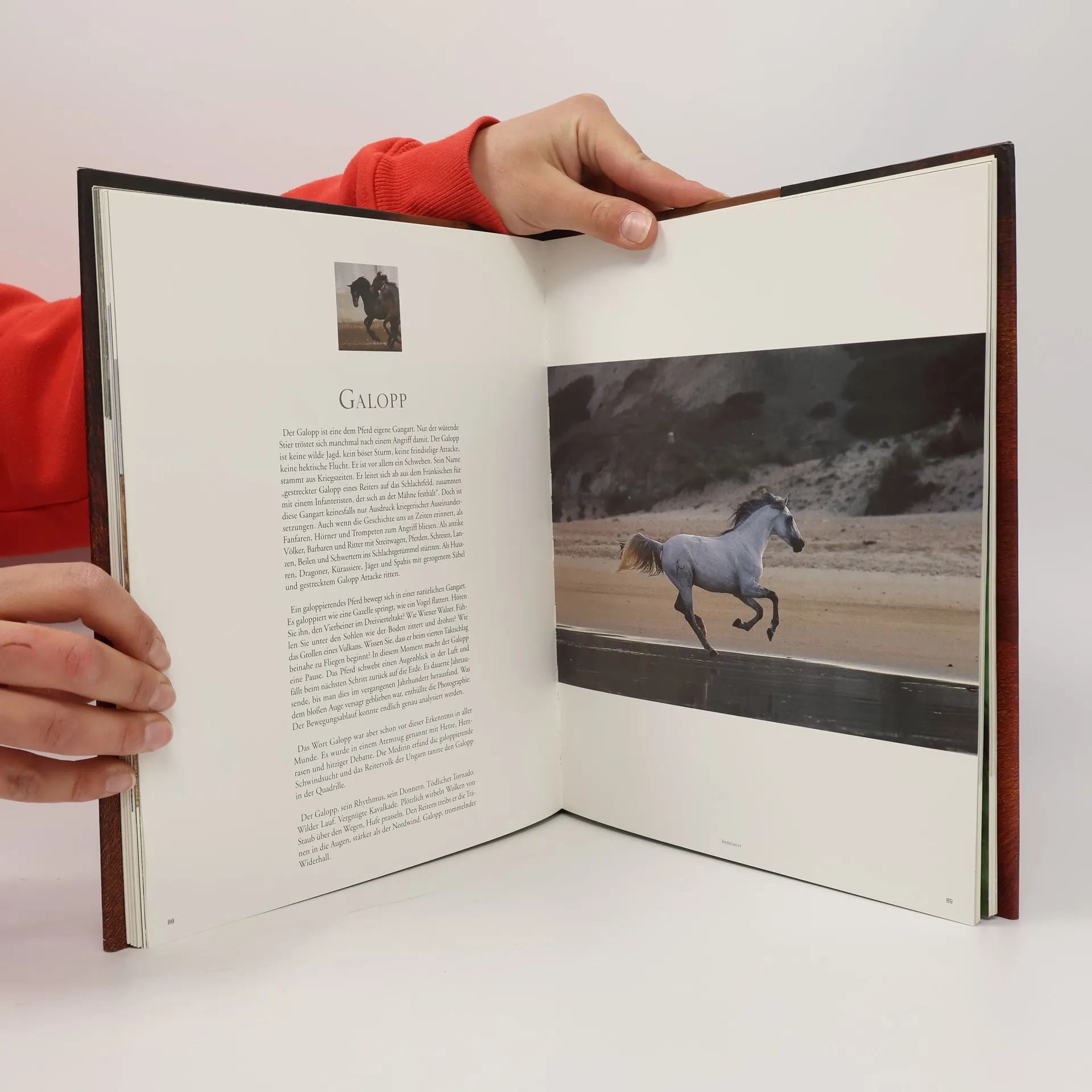 Ein wunderbar fotografierter Bildband, mit Texten von Mary-Gérard Vaude. Im ersten Teil werden 40 verschiedene Pferde- und Ponyrassen vorgestellt (Trakehner, Lippizaner, Englisches Vollblut, Friese, Shetland etc.), der zweite Teil ist Bildband, wie er schöner kaum sein kann. Fotografien, die die ungebrochene Faszination, die von Pferden ausgeht, bestechend einfängt. 192 Seiten, in sehr hochwertiger Ausstattung bieten ein hervorragendes Preis/Leistungsverhältnis. Autor: Mary-Gérard Vaude Vorwort: Manfred Plewa, Leiter West. Reit- und Fahrschule