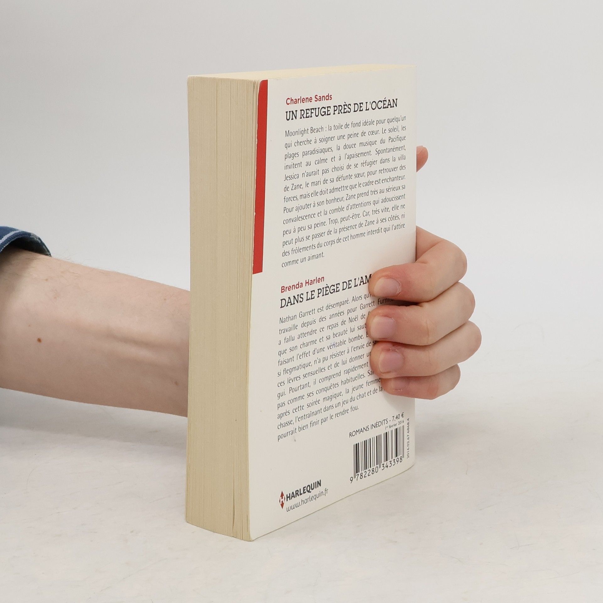 <strong> <em>Un refuge pres de l'ocean, </em> </strong> Charlene Sands Moonlight Beach: la toile de fond ideale pour quelqu un qui cherche a soigner une peine de coeur. Le soleil, les plages paradisiaques, la douce musique du Pacifique invitent au calme et a l apaisement. Spontanement, Jessica n aurait pas choisi de se refugier dans la villa de Zane, le mari de sa defunte soeur, pour retrouver des forces, mais elle doit admettre que le cadre est enchanteur. Pour ajouter a son bonheur, Zane prend tres au serieux sa convalescence et la comble d attentions qui adoucissent peu a peu sa peine. Trop, peut-etre. Car, tres vite, elle ne peut plus se passer de la presence de Zane a ses cotes, ni des frolements du corps de cet homme interdit qui l attire comme un aimant. <strong> <em>Dans le piege de l'amour, </em> </strong> Brenda Harlen Nathan Garrett est desempare. Alors qu Allison Caldwell travaille depuis des annees pour Garrett Furniture, il a fallu attendre ce repas de Noel de l entreprise pour que son charme et sa beaute lui sautent aux yeux, lui faisant l effet d une veritable bombe. Et lui, d ordinaire si flegmatique, n a pu resister a l envie de se pencher sur ces levres sensuelles et de lui donner un baiser sous le gui. Pourtant, il comprend rapidement qu Allison n est pas comme ses conquetes habituelles. Sans explication, apres cette soiree magique, la jeune femme le fuit, le chasse, l entrainant dans un jeu du chat et de la souris qui pourrait bien finir par le rendre fou."