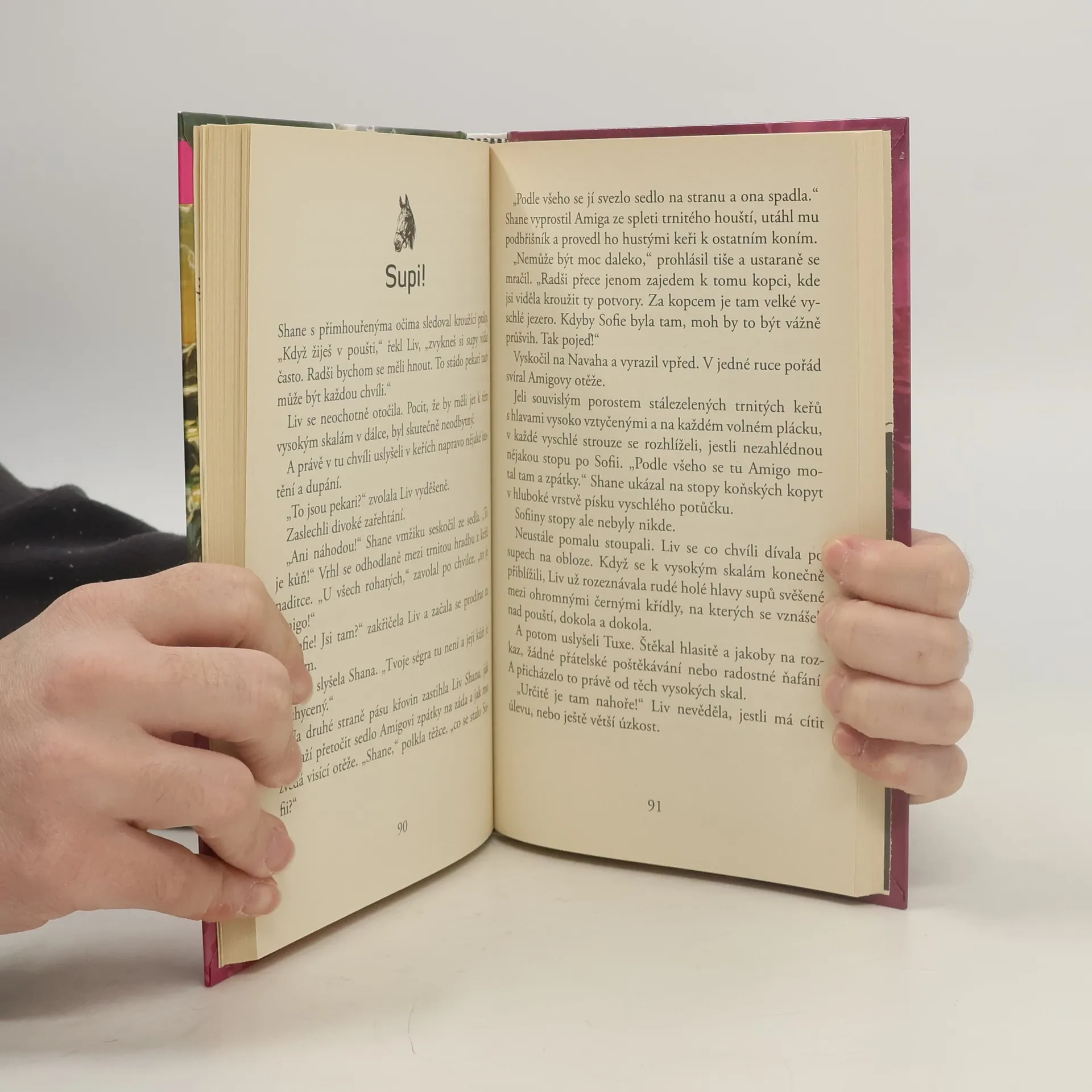 Jak jen mohou být sestry tak rozdílné – a to jsou ještě navíc dvojčata! Liv má dobrodružství v krvi snad od narození, nezalekne se nebezpečné vyjížďky na koni na skalní římse nad kaňonem ani shánění polodivokých koní na dědečkově ranči. Sofie má naproti tomu ráda svůj klid, nesnáší dobrodružství a nebezpečí – a také že se jí při výpravách, které naplánuje její sestra, pokaždé něco stane! Ale když se na ranči jejich prarodičů v Arizoně začne schylovat k pořádným problémům, sestry se semknou a spolu s mladým honákem Shanem se rozhodnou zachránit ranč, záhadného divokého hřebce i stádo vzácných dědečkových koní. A nikdo a nic jim v tom nezabrání – ani chřestýši, anistádo divočáků, ani ozbrojení pytláci! První díl knižní řady Potok divokých koní.