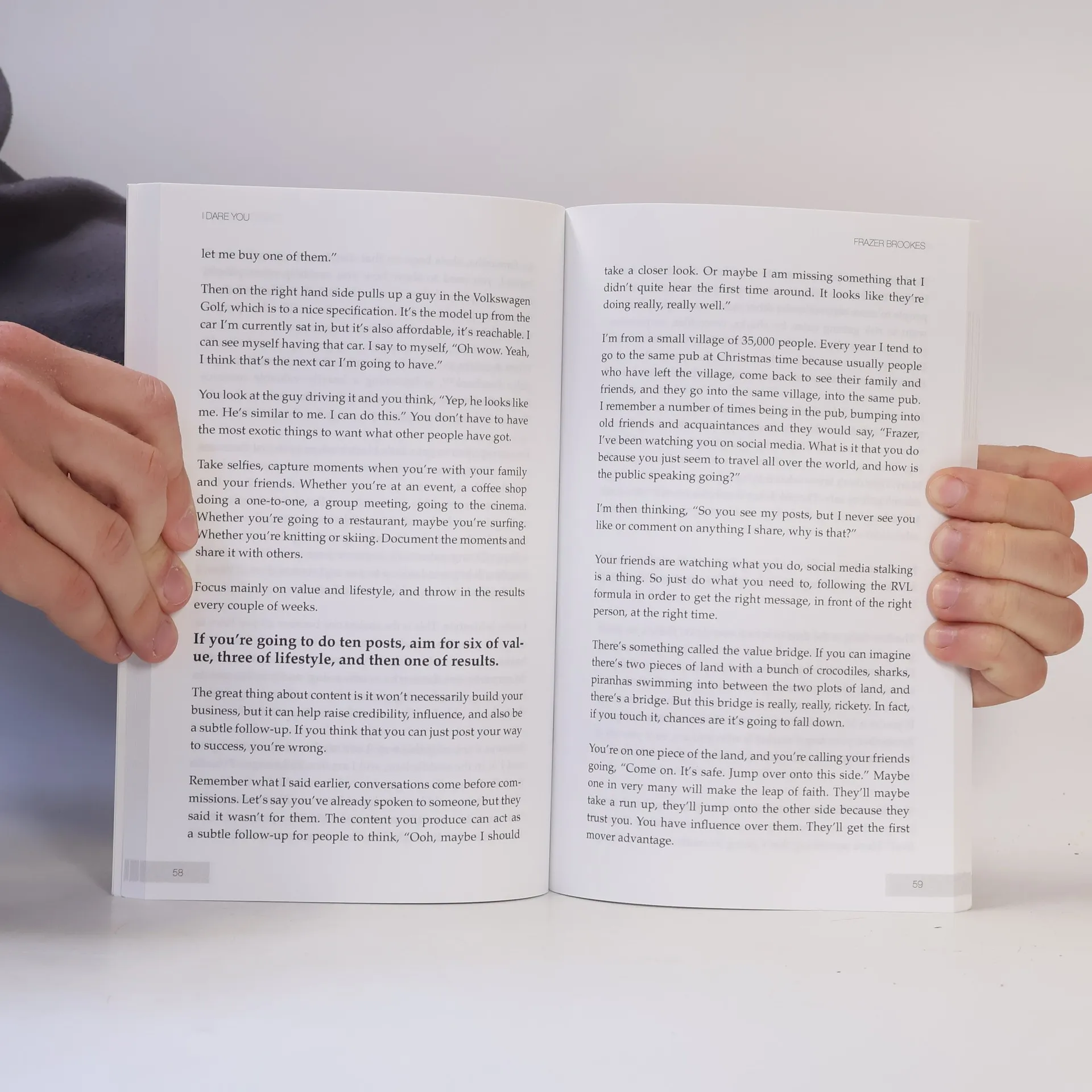 WHAT IS I DARE YOU ABOUT? In Network Marketing, if you want to achieve the success you want, you have to be willing to complete certain assignments. Some like to call them action steps, I like to call them “dares”. I Dare You was written to give people in the Network Marketing industry a simple, and easy to follow step by step system to grow their followings, increase sales, and build a thriving organisation. If you are wanting to grow your business using social media then you are in the right place at the right time. HOW WILL I DARE YOU HELP YOU? You will learn many things from reading I Dare You, but the key areas Discover The Most Effective Posts To highly engaging posts that will get you the attention you need. Learn The Number One Activity To Grow Your using this simple technique you will be inundated with friend requests. Master The Art Of Connecting With following this process you will never run out of hot prospects to introduce your product, service or opportunity to. The Blueprint To Turning Strangers Into this will grow your likeability, credibility, and eventually profitability. Perfect The Closing you will never have to worry about asking the all important question again, once you know this tactic.