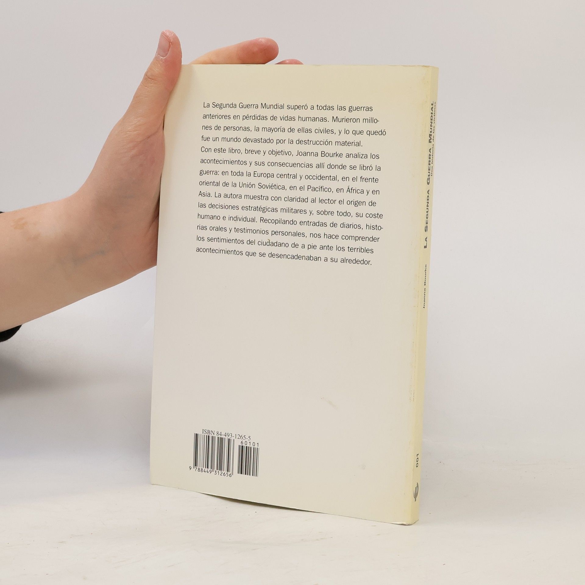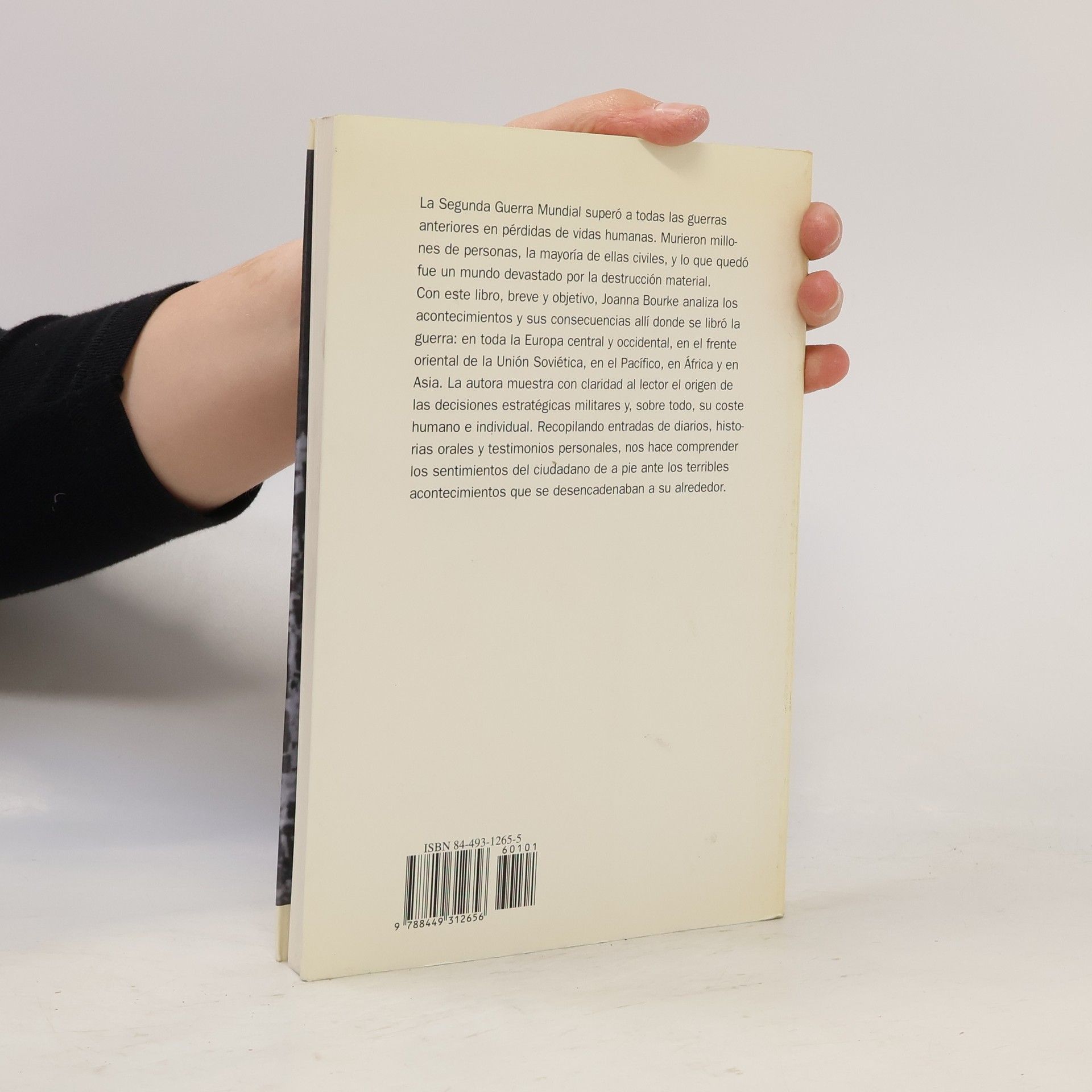 La segunda guerra mundial supero a todas las guerras anteriores en perdidas de vidas humanas. Murieron millones de personas, la mayoria de ellas civiles, y lo que quedo fue un mundo devastado por la destruccion material.Con este libro, breve y objetivo, Joanna Bourke analiza los acontecimientos y sus consecuencias alli donde se libro la guerra: en toda la Europa central y occidental, en el frente oriental de la Union Sovietica, en el Pacifico, en Cfrica y en Asia. La autora muestra con claridad al lector el origen de las decisiones estrategicas militares, y sobre todo, su coste humano e individual. Recopilando entradas de diarios, historias orales, y testimonios personales, comprendemos los sentimientos del ciudadano de a pie ante los terribles acontecimiento que se desencadenaban a su alrededor.Joanna Bourke es catedratica de Historia en el Birkbeck College, en Londres. Es autora de libros sobre la historia irlandesa, la historia de las clases trabajadoras britanicas y las guerras del siglo XX. Su anterior libro, An Intimate History of Killing (1999), gano el Premio Fraenkel de Historia Contemporanea y el Premio Wolfson de Historia.