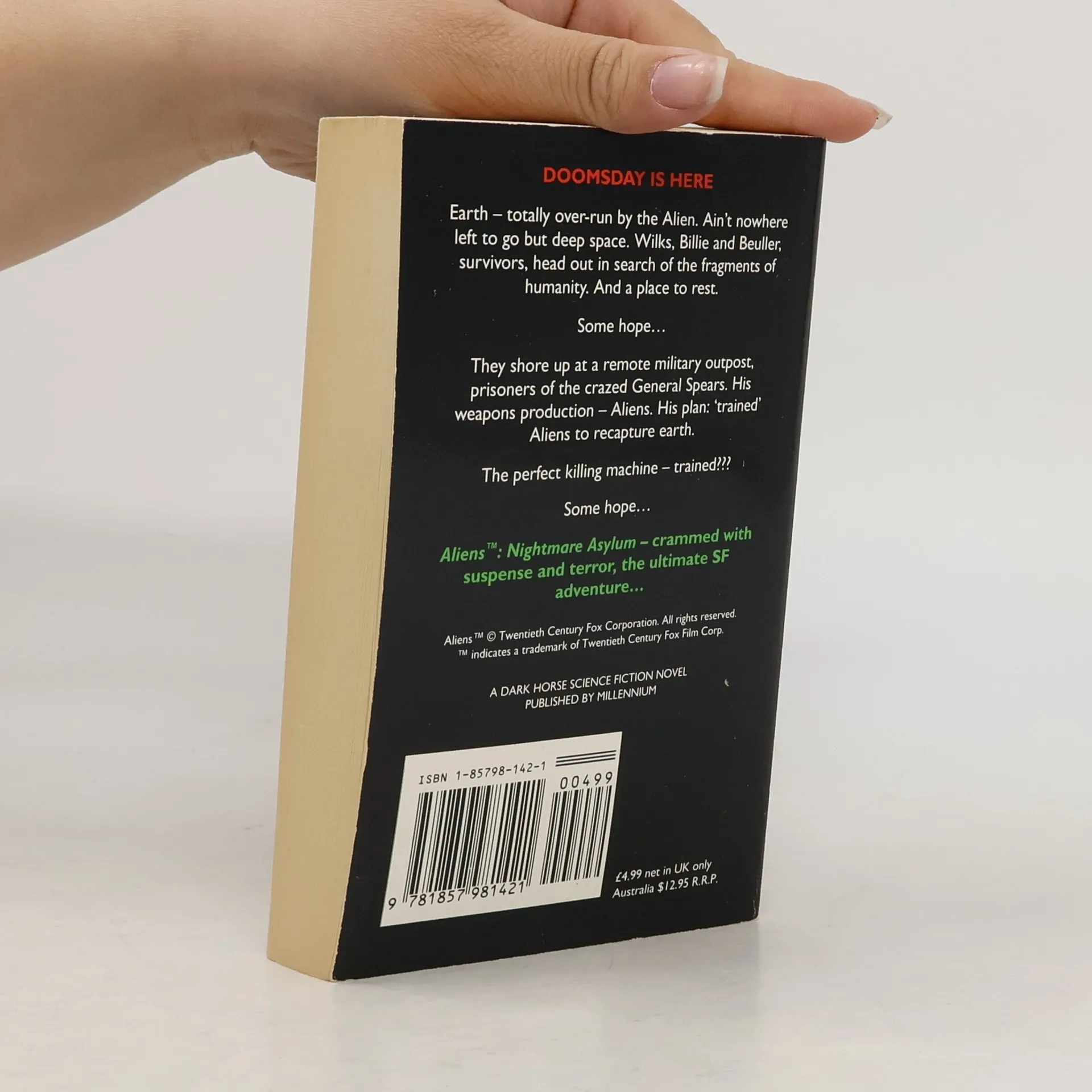 Wilks, Billie, and Bueller were the last survivors of a devastating assault on the aliens' home planet. But once their retum to the solar system made them refugees once more, fleeing Earth and its alien infestation in a desperate attempt to stay alive. Now, in an otherwise unmanned military transport, they hurtle through space. Destination: unknown. Little do they know that the cargo they carry with them is a legacy of death that they will ultimately have to face. Nor do they know that they head toward a remote colony and military outpost. This pocket of humanity at the very edges of space is at the mercy of a general names Spears with an agenda all his own. Now Billie, Wilks, and Bueller face a new nightmare, and it is nothing they could ever have imagined: a gift of madness from an alien world, unbalanced mind, and the experiences of a mysterious pilot named Lieutenant Ellen Ripley.