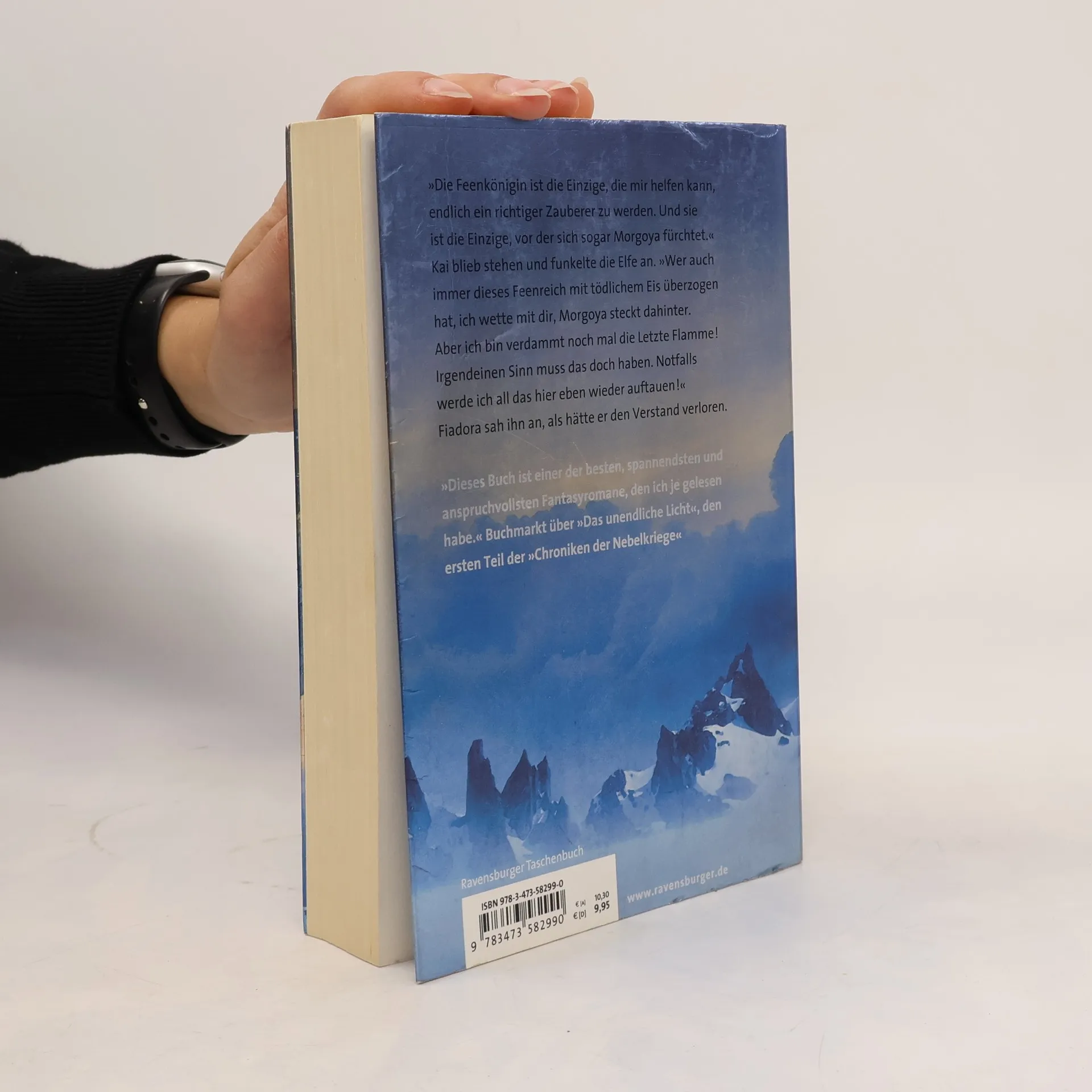 Eine unbekannte Macht lässt die Welt nach und nach zu Eis erstarren. Wer steckt hinter diesen bösen Machenschaften? Morgoya, die Herrin der Finsternis, oder der Drachenkönig Pelagor? Als auch das Reich der Feenkönigin unter einem Eismantel begraben wird, scheint es, als könne nur noch Zauberlehrling Kai die Welt retten. Nur er, der letzte Feuermagier, könnte den Bann des Eiszaubers brechen. Aber reichen seine Zauberkünste dafür schon aus? Gemeinsam mit seinen Vertrauten macht er sich auf den gefährlichen Weg, die dunklen Mächte zu besiegen. Im zweiten Teil dieser Fantasy-Trilogie entführt Thomas Finn die Leser in seine abenteuerliche Welt voller Hexen, Zwerge, Elfen und Drachen. Feenkönigin Berchtis ruft alle Zauberer der freien Welt zusammen, um sich gegen die böse Magierin Morgoya zu verbünden. Doch vor diesem Treffen muss Kai viele Prüfungen bestehen: den Kampf gegen die hartnäckigen Frostgeister, die Wiederbelebung eines Elfen, die Optimierung seines Zauberstabes durch den Geist des Berges und die fast tödliche Begegnung mit den Drachen im Zwergenreich. Als Kai mit seinem Lehrmeister Däumlingszauberer Eulertin, den Elfen Fi und Gilraen sowie der Gargyle Dystariel bei Berchtis ankommt, ist es schon zu spät: Auch das Feenreich liegt unter einer Frostdecke, die Bewohner sind zu Eis erstarrt. Kann Kai, der Bewahrer des unendlichen Lichtes, die dunklen Mächte mit seinen Kräften bekämpfen? Dabei hat er stets seine Prophezeiung im Kopf: „Die Flamme wird brennen, die Flamme wird flackern, im Ringen mit der Dunkelheit. Doch am Ende wird sie unterliegen.“