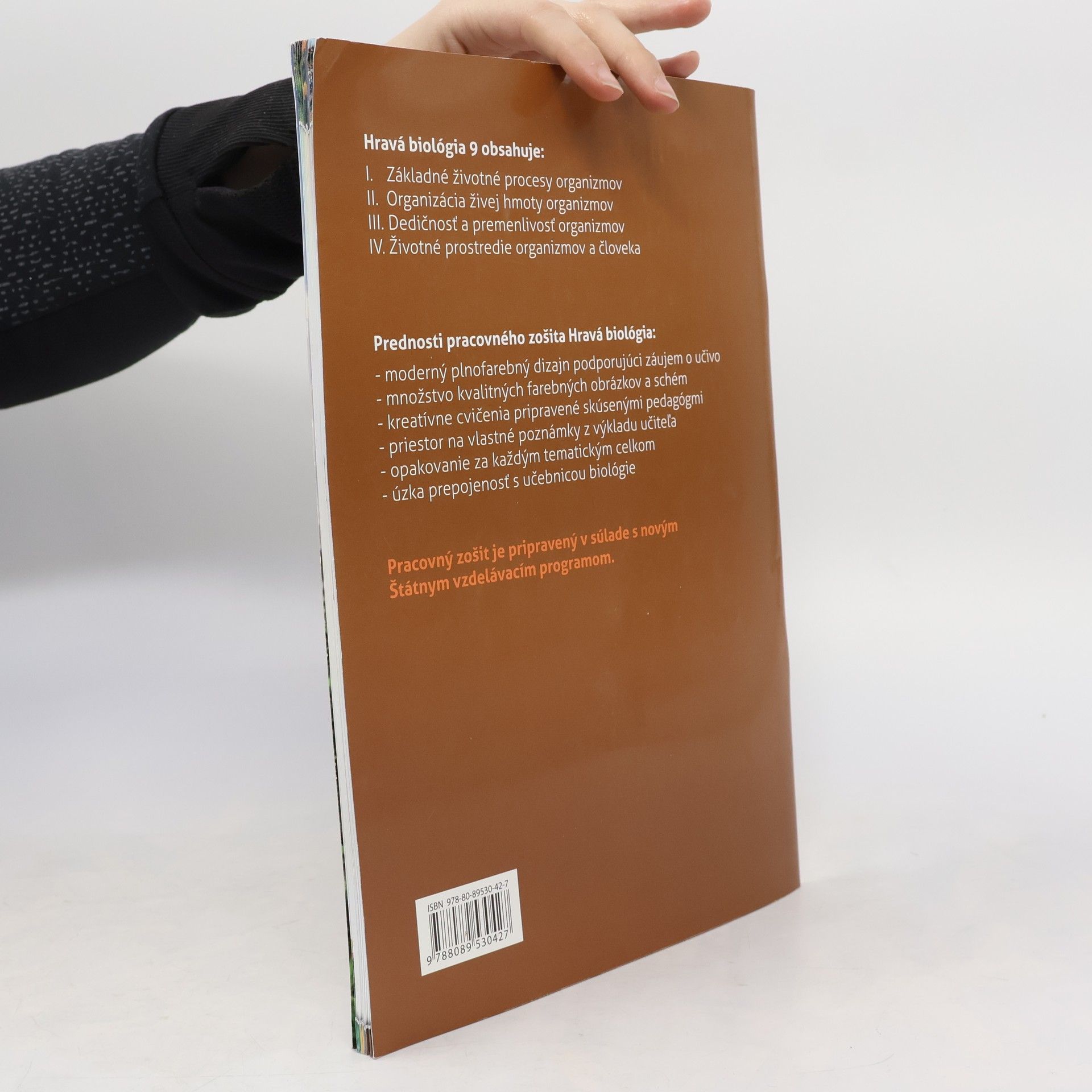 Pracovný zošit Hravá biológia 9 je moderná učebná pomôcka zameraná na rozvoj kľúčových kompetencií žiaka. Obsah zošita je logicky členený na funkčné časti, korešpondujúce s obsahom používanej učebnice. Pútavé a atraktívne spracované úlohy podporujú kreativitu žiaka a motivujú ho k práci. Úlohy vychádzajú z obsahových požiadaviek vzdelávacieho štandardu ŠVP. Súčasťou zošita sú aj rozširujúce úlohy pre žiakov s hlbším záujmom o biológiu. Typológia úloh umožňuje samostatnú prácu žiaka, ale aj spoločnú prácu žiakov v škole na vyučovaní. O B S A H: I. Základné životné procesy organizmov II. Organizácia živej hmoty organizmov III. Dedičnosť a premenlivosť organizmov IV. Životné prostredie organizmov a človeka