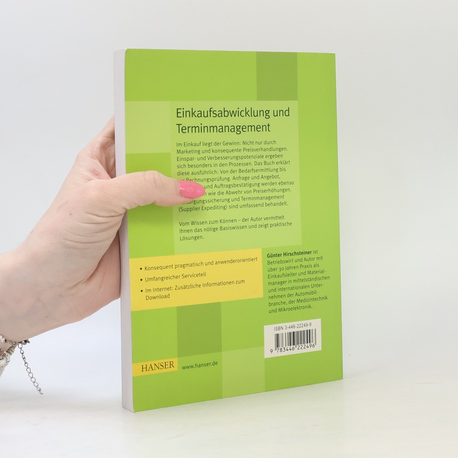 Im Einkauf liegt der Gewinn: Nicht nur durch Marketing und konsequente Preisverhandlungen. Einspar- und Verbesserungspotenziale ergeben sich besonders in den Prozessen. Das Buch erklärt diese ausführlich: Von der Bedarfsermittlung bis zur Rechnungsprüfung. Anfrage und Angebot, Bestellung und Auftragsbestätigung werden ebenso beschrieben wie die Abwehr von Preiserhöhungen. Versorgungssicherung und Terminmanagement (Supplier Expediting) sind umfassend behandelt. Vom Wissen zum Können - der Autor vermittelt Ihnen das nötige Basiswissen und zeigt praktische Lösungen. Highlights · Konsequent pragmatisch und anwenderorientiert · Umfangreicher Serviceteil · Im Internet: Zusätzliche Informationen zum Download Der Autor Günter Hirschsteiner ist Betriebswirt und Autor mit über 30 Jahren Praxis als Einkaufsleiter und Materialmanager in mittelständischen und internationalen Unternehmen der Automobilbranche, der Medizintechnik und Mikroelektronik.