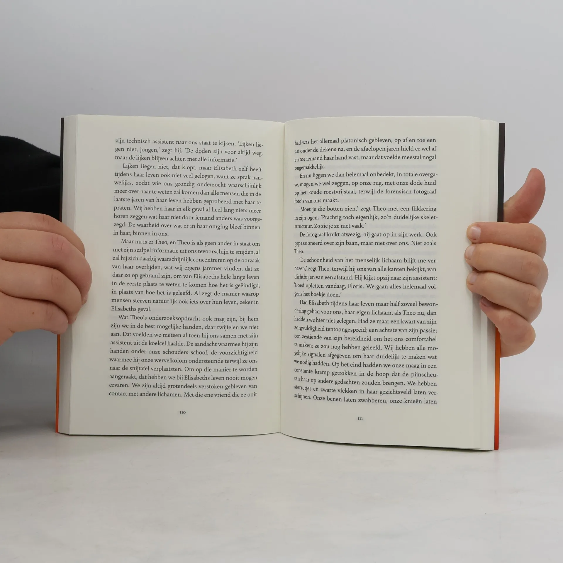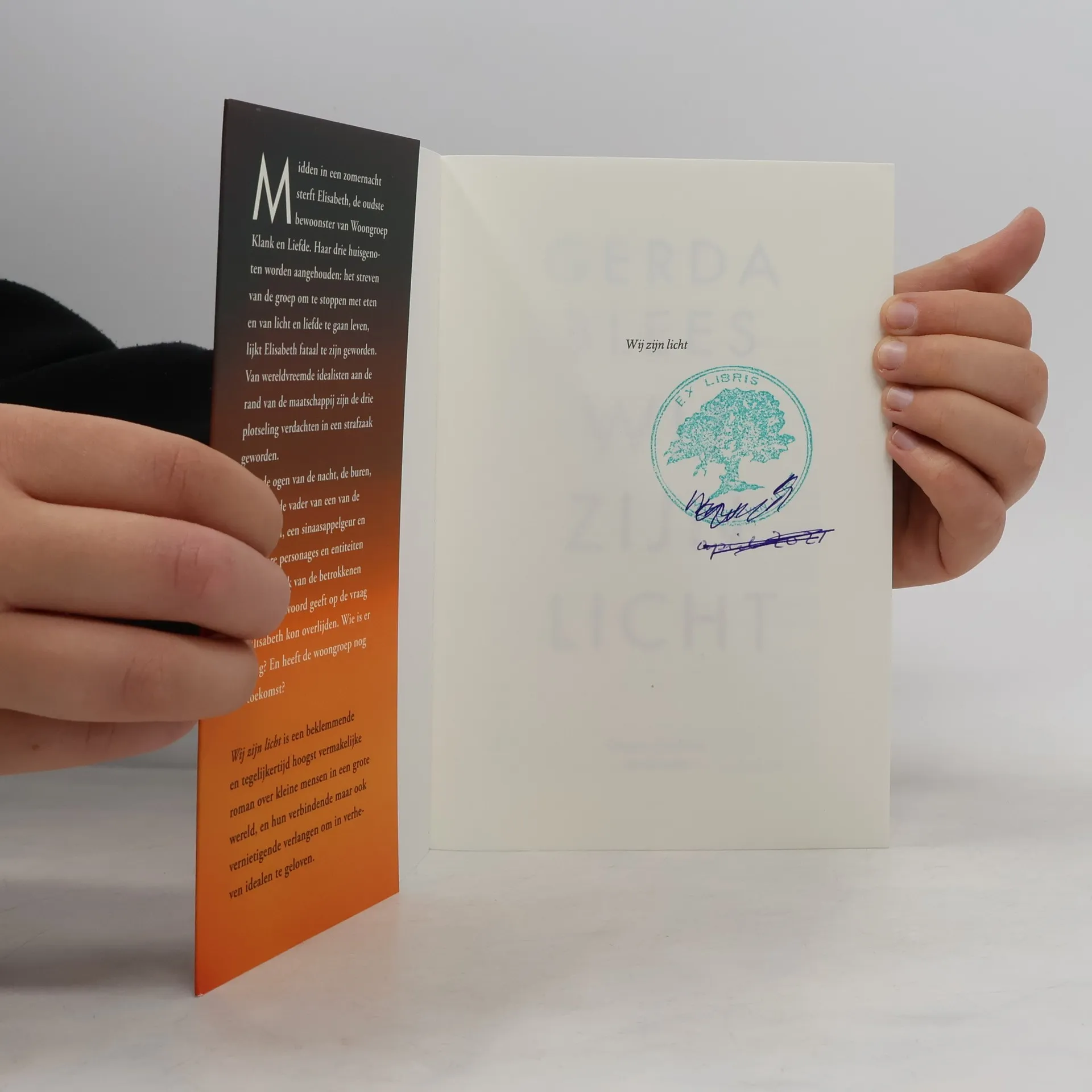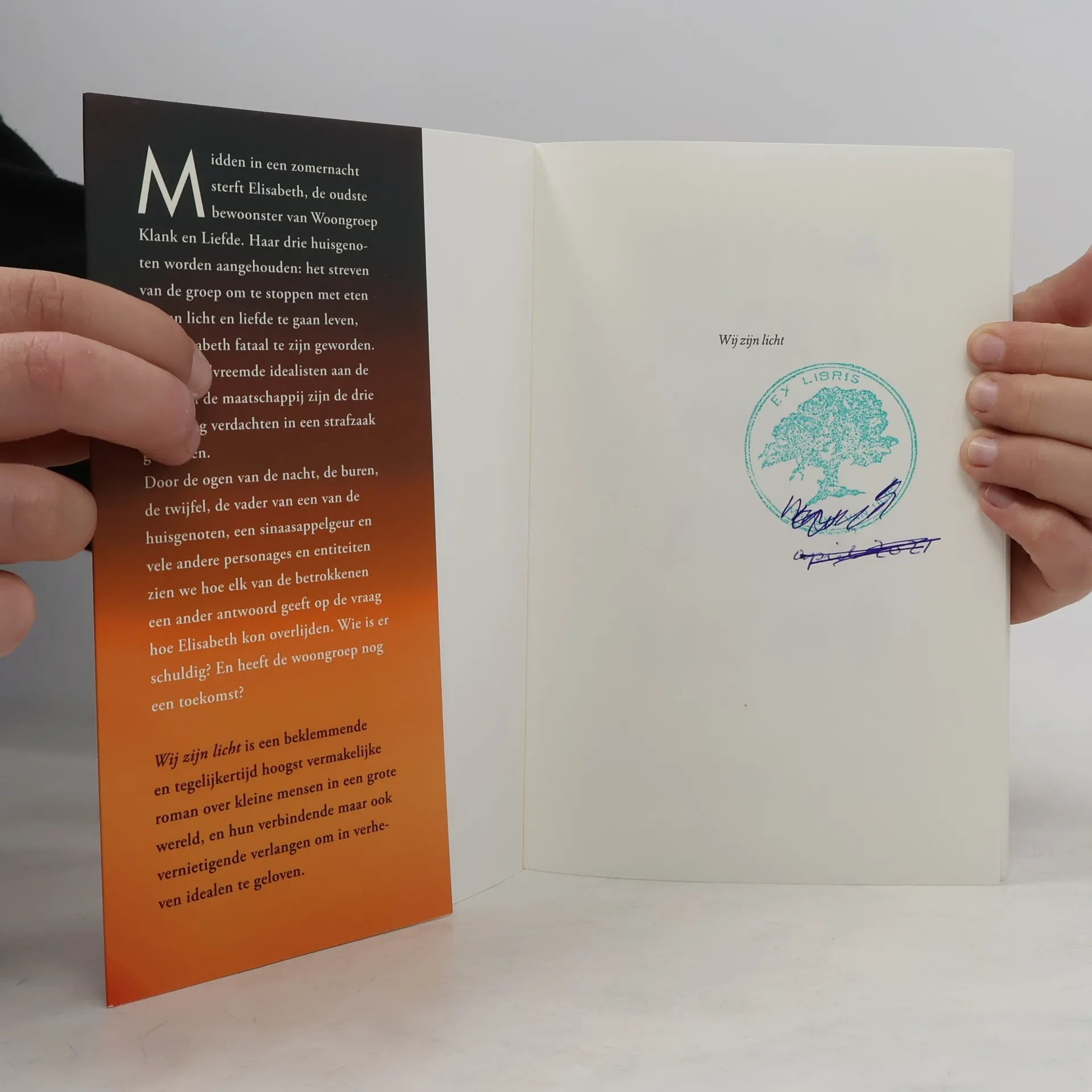 Midden in een zomernacht sterft Elisabeth, de oudste bewoonster van de spirituele woongroep Klank en Liefde. Haar drie huisgenoten worden aangehouden: het streven van de groep om te stoppen met eten en van licht, lucht en liefde te gaan leven, lijkt Elisabeth fataal te zijn geworden. Van wereldvreemde idealisten aan de rand van de maatschappij zijn de drie plotseling landelijk nieuws geworden. Door de ogen van de nacht, de buren, de twijfel, de vader van een van de huisgenoten, een sinaasappelgeur en vele andere personages en entiteiten zien we hoe elk van de betrokkenen een ander antwoord geeft op de vraag hoe Elisabeth kon overlijden, wie er schuldig is, en of woongroep nog toekomst heeft. Een beklemmende en tegelijkertijd hoogst vermakelijke roman over kleine mensen in een grote wereld, en hun verbindende maar ook vernietigende verlangen om in verheven idealen te geloven. Met haar stilistische beheersing en ingenieus vertelperspectief schreef Blees een meesterlijk debuut.