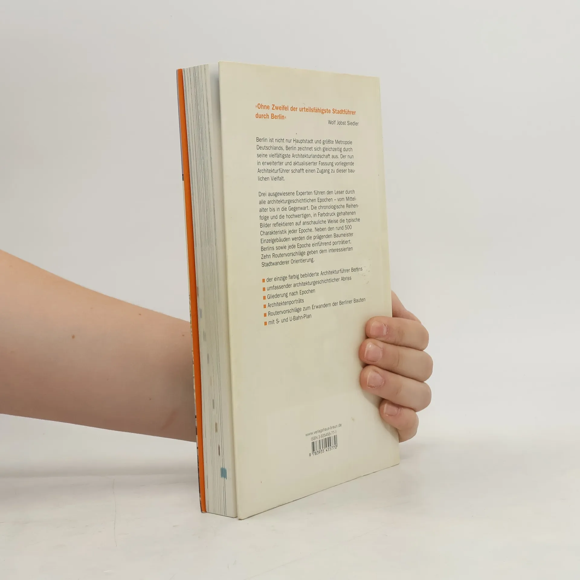 „ganz ohne Zweifel der urteilsfähigste Stadtführer durch Berlin“ Wolf J. Siedler in „Die Welt“ über die Erstauflage 2002 Berlin ist nicht nur Hauptstadt und größte Metropole Deutschlands, Berlin zeichnet sich gleichzeitig durch seine vielfältigste Architekturlandschaft aus. Dieser Architekturführer schafft einen Zugang zu dieser baulichen Bandbreite. Drei ausgewiesene Experten nehmen den Leser mit auf eine Entdeckungstour quer durch alle Architekturgeschichtlichen Epochen – vom Mittelalter bis in die Gegenwart. Die chronologisch gegliederten Kapitel und die farbigen Abbildungen vermitteln auf anschauliche Weise die Charakteristik jeder Epoche. Neben den rund 500 Einzelgebäuden werden einflussreiche Baumeister Berlins sowie jede Epoche einführend porträtiert. Mehrere Routenvorschläge ermöglichen es dem interessierten Stadtwanderer, Berlin auf unterschiedlichste Weise zu erleben. Aus dem Inhalt: umfassender architekturgeschichtlicher Abriss Gliederung nach Epochen Architektenporträts Routenvorschläge zum Erwandern der Berliner Bauten mit S- und U-Bahn-Plan