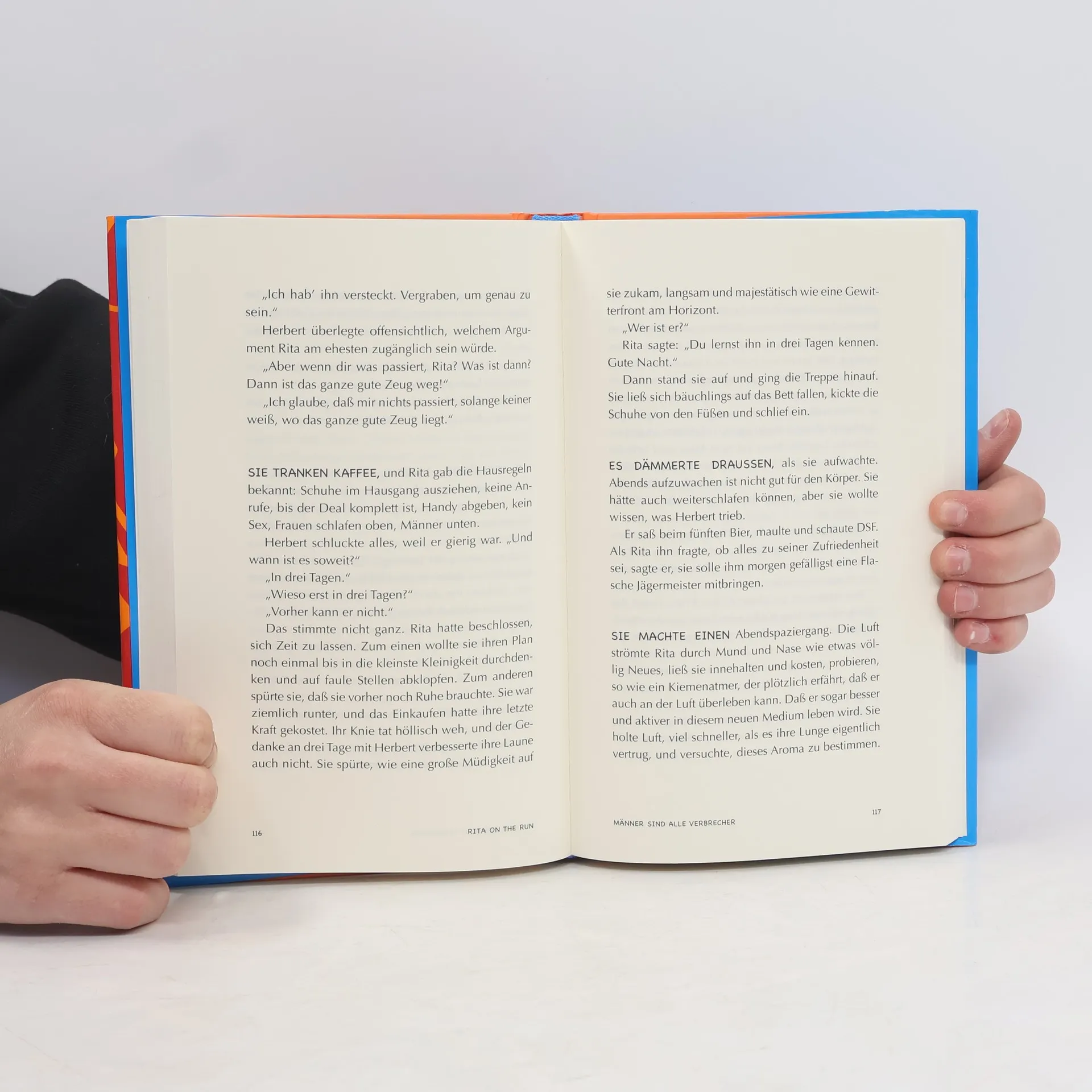 Rita ist eine Frankfurter Barschlampe Anfang 40, die ihre meisten Illusionen verloren hat An einem Abend in ihrer Animierkneipe reißt sie einen blassen Langweiler auf, der sich bei ihr zu Hause zusehends zu einem angsteinflössenden Sadisten entwickelt und nur durch eine Portion KO-Tropfen gestoppt werden kann. Allerdings wirken die KO-Tropfen über die Maßen stark: Der Mann ist tot. Außerdem setzt Rita mehr aus Zufall noch zwei weitere Personen außer Gefecht. Danach sitzt sie mit drei Leichen in ihrer Wohnung und denkt über ihr verpfuschtes Leben nach. Schließlich beschließt sie zu fliehen - und um an Geld zu kommen, versucht sie ein Auto zu verkaufen. Der vermeintliche Käufer entpuppt sich als Mitspieler in diesem Drama und Rita kann sich gerade noch ihrer Haut erwehren - er jedoch haucht sein Leben unter einem tiefer-gelegten Camaro aus. Rita entwickelt sich von Todesfall zu Todesfall und entdeckt scheinbar neue Seiten an sich: Kraft, Intelligenz und Selbstbewusstsein. Also ein 'Entwicklungs'- ebenso wie ein Emanzipationsroman. Auf ihrem Weg zum final Showdown auf der Insel Hiddensee zieht sie eine Spur der Vernichtung hinter sich her. Doch am Ende könnte sie mit einem freundlichen Inselbewohner das verdiente Glück finden, wenn dann nicht noch alles anders käme und sich zum Schluss glücklicherweise die Aussicht auf eine Romanserie ergäbe.