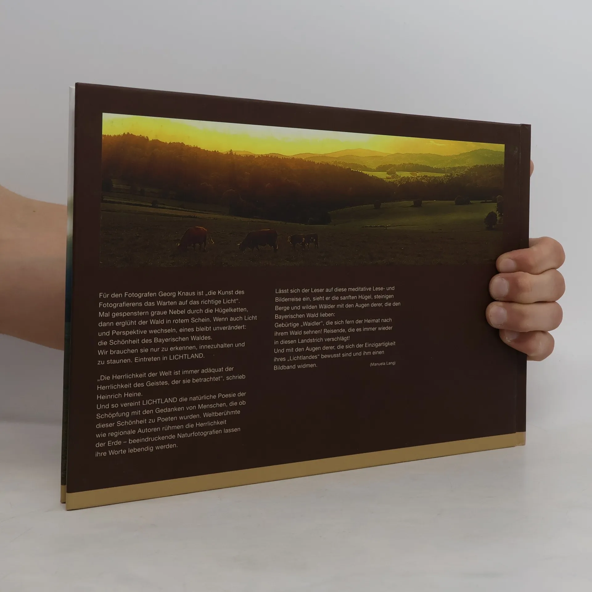 Eine meditative Lese- und Bilderreise. Die natürliche Poesie der Schöpfung, die Schönheit des Bayerischen Waldes, vereint mit den Gedanken von Menschen, die ob dieser Schönheit zu Poeten wurden. Weltberühmte wie regionale Autoren rühmen die Herrlichkeit der Erde und beeindruckende Naturfotografien lassen ihre Worte lebendig werden. Eine Bildband für alle, die die Natur, den Bayerischen Wald und seine Einzigartigkeit lieben.