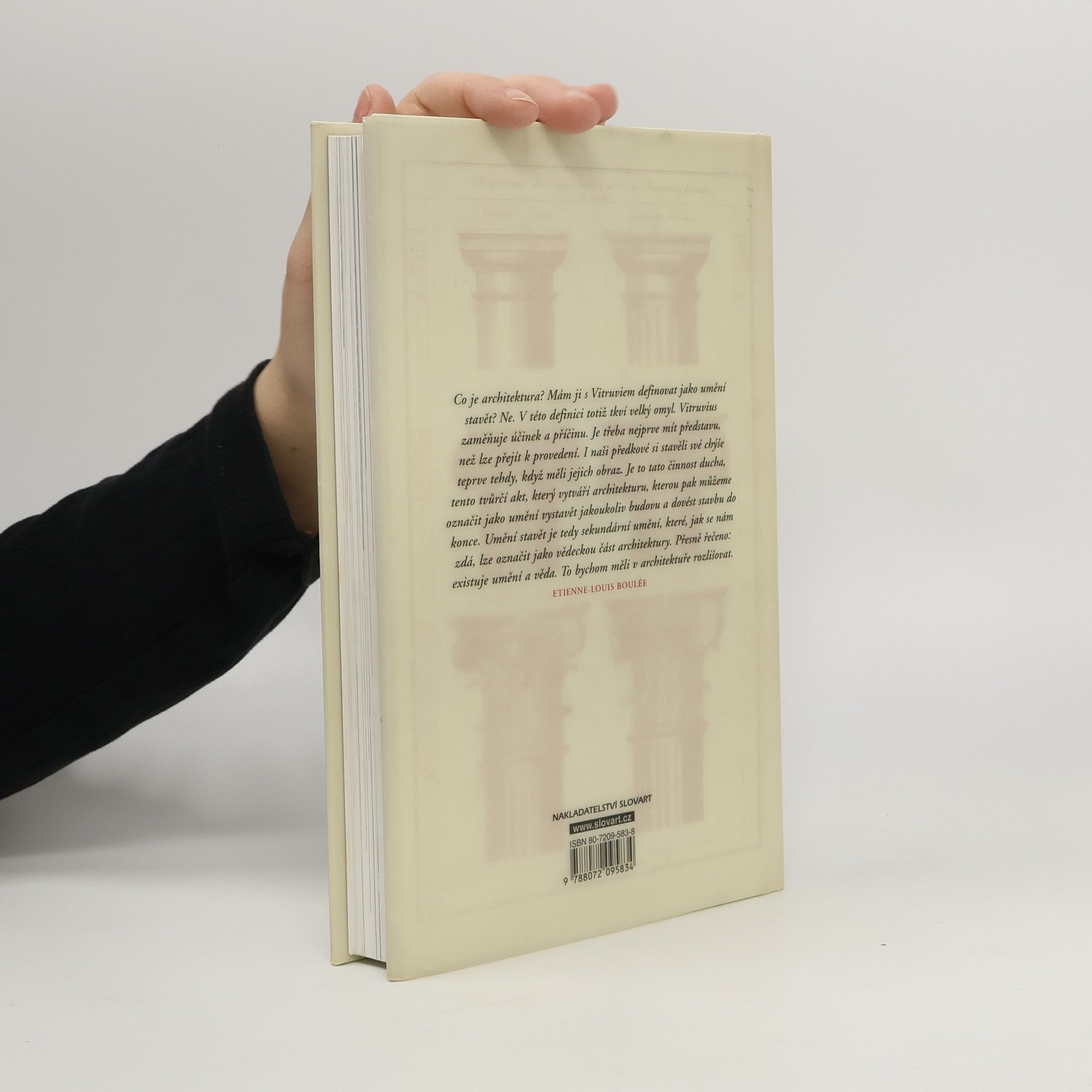 Informativní a zároveň zábavné uvedení ke dvoutisícileté historii evropské a americké architektury, přibližující zároveň myšlenky a poučky, které dodnes představují pro architekty určité měřítko a jejichž znalost je předpokladem pro každého, kdo se dnes chce účastnit bohaté a kontroverzní diskuse o stavebních projektech. Zmínění architekti: Alberti, Berlage, Boullée a Ledoux, Le Corbusier, Fischer z Erlachu, Ginzburg, Kahn, Jefferson, Loos, Mies van der Rohe, Palladio, Rossi, Schinkel, Smithsonovi, Ungers, Venturi a Scott-Brownová, Vitruvius, Wren, Wright. Obsahuje náčrty a fotografie.
