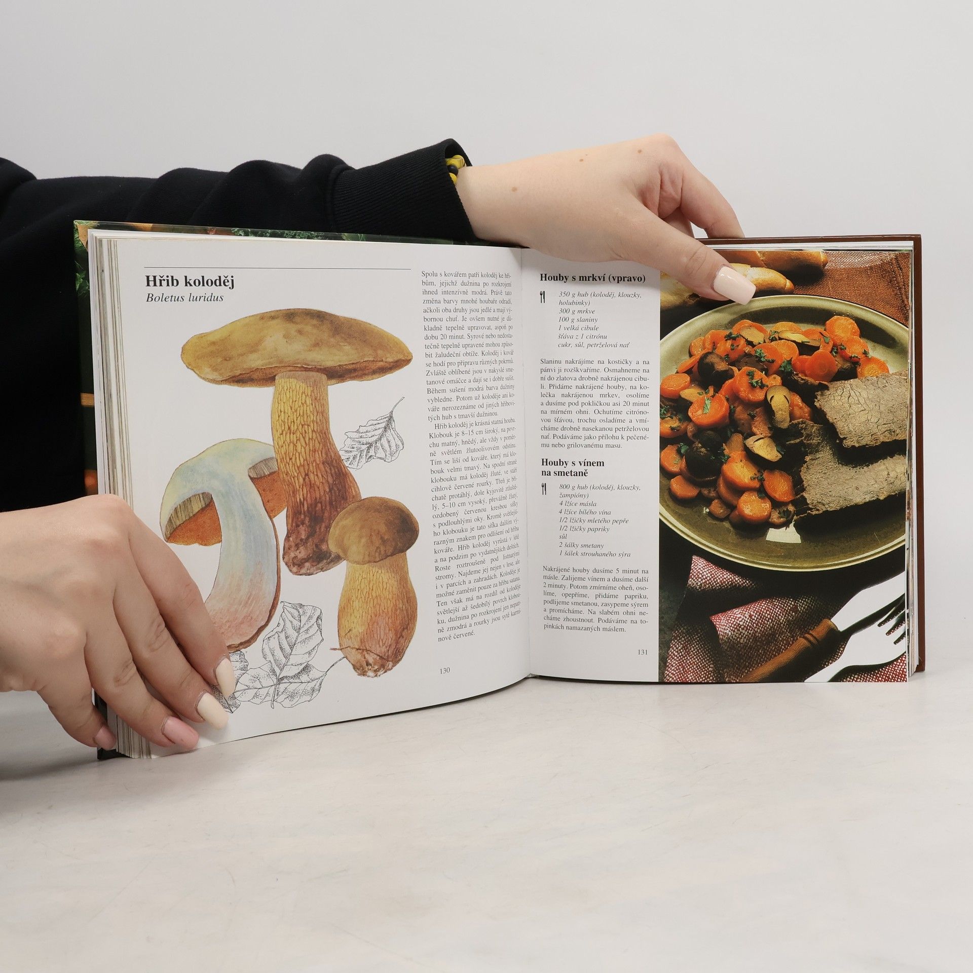 Houbařská kuchařka, kolem 200 receptů z 55 jedlých druhů hub, barevné fotografie receptů od autora a Jiřího Poláčka, doplňují kresby hub Bohumila Vančury