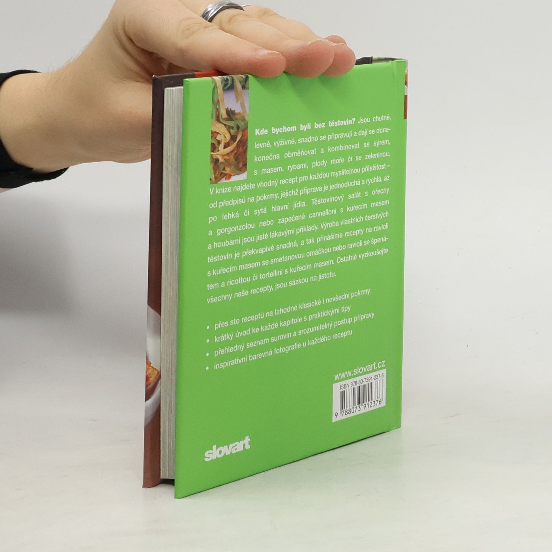 Těstoviny jsou chutné, levné, výživné, snadno se připravují a dají se donekonečna obměňovat a kombinovat se sýrem, s masem, rybami, plody moře i se zeleninou. V knize najdete vhodný recept pro každou myslitelnou příležitost – od předpisů na pokrmy, jejichž příprava je jednoduchá a rychlá, až po lehká či sytá hlavní jídla. Těstovinový salát s ořechy a gorgonzolou nebo zapečené cannelloni s kuřecím masem a houbami jsou jistě lákavými příklady. Výroba vlastních čerstvých těstovin je překvapivě snadná, a tak přinášíme recepty na kuřecí ravioli se smetanovou omáčkou nebo ravioli se špenátem a ricottou či tortellini s kuřecím masem. Ostatně vyzkoušejte všechny naše recepty, jsou sázkou na jistotu.
