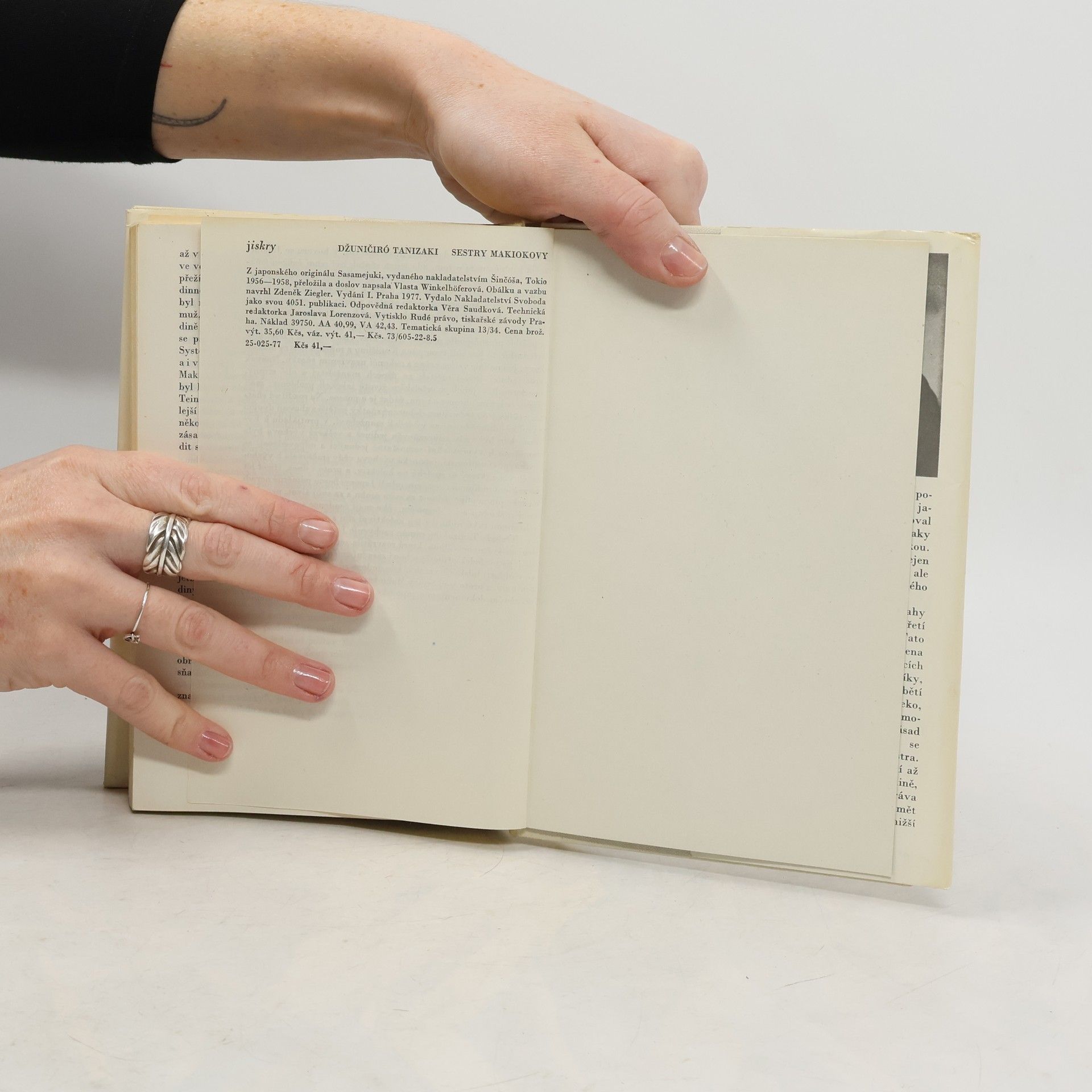 Jeden z největších japonských moderních autorů umístil děj rodinné ságy o úpadku patriarchálního rodu do Ósaky těsně před druhou světovou válkou. Hlavní linii románu tvoří osud čtyř sester, z nichž nejmladší revoltuje proti společenským pořádkům tím, že si chce sama vydělávat avzít si za manžela muže z nižší společenské vrstvy.