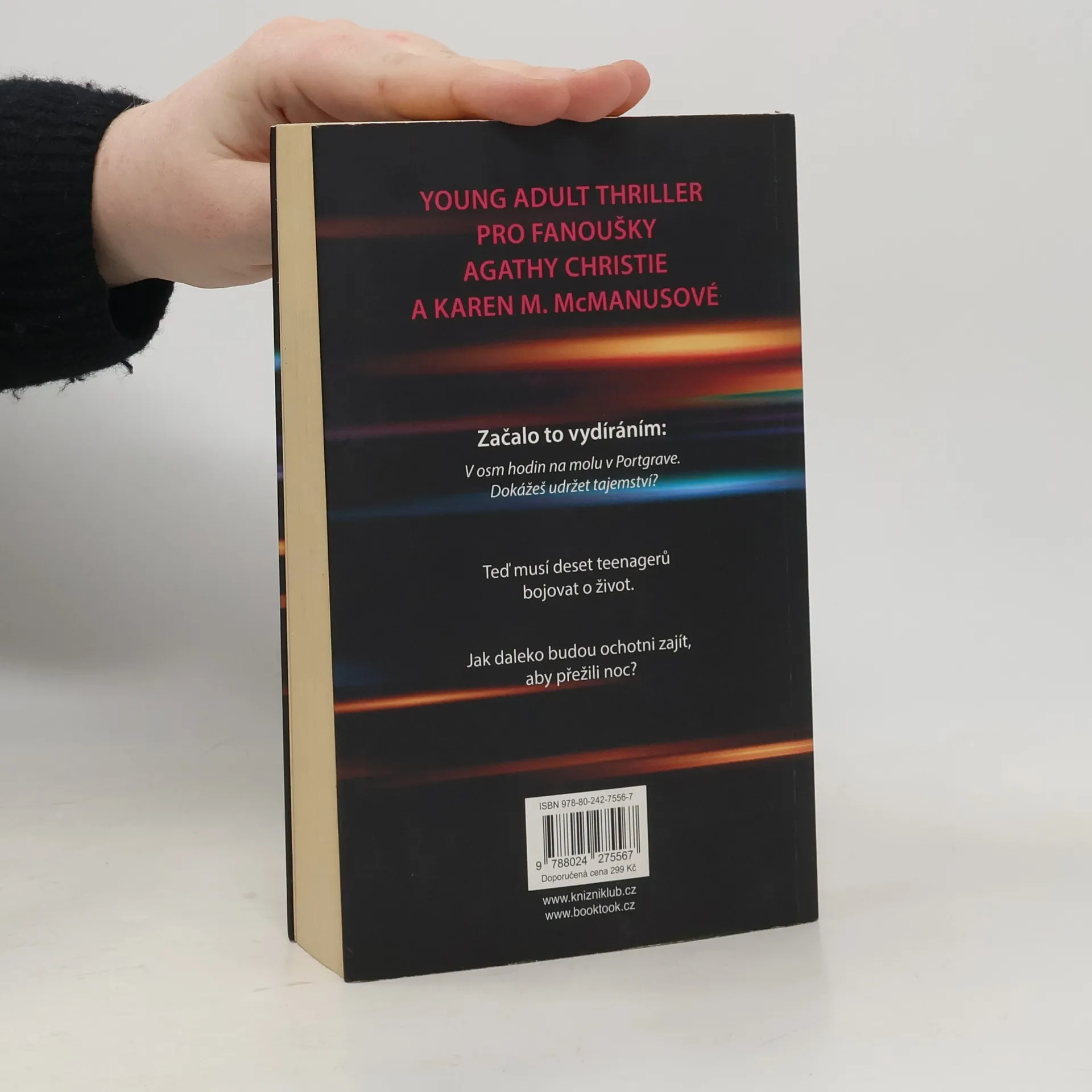 Young adult thriller pro fanoušky Agathy Christie a Karen M. McManusové. Psychologická hra. Vydírání. Vražda. Chaos. Šestnáctiletou Avu někdo přinutil, aby dorazila do opuštěného zábavního parku na mole Portgrave. Ocitá se tak mezi deseti teenagery odhodlanými za každou cenu uchovat svá tajemství. Když se zvedne mlha a park se ponoří do tmy, skupina zůstane odříznutá od okolního světa. Znepokojivá situace je postupně obrací jednoho proti druhému a Ava si uvědomuje, že nemá na výběr. Není kam utéct – bude se muset tajemství, které ji na molo přivedlo, postavit čelem. Jak daleko bude ochotná zajít, aby přežila noc?