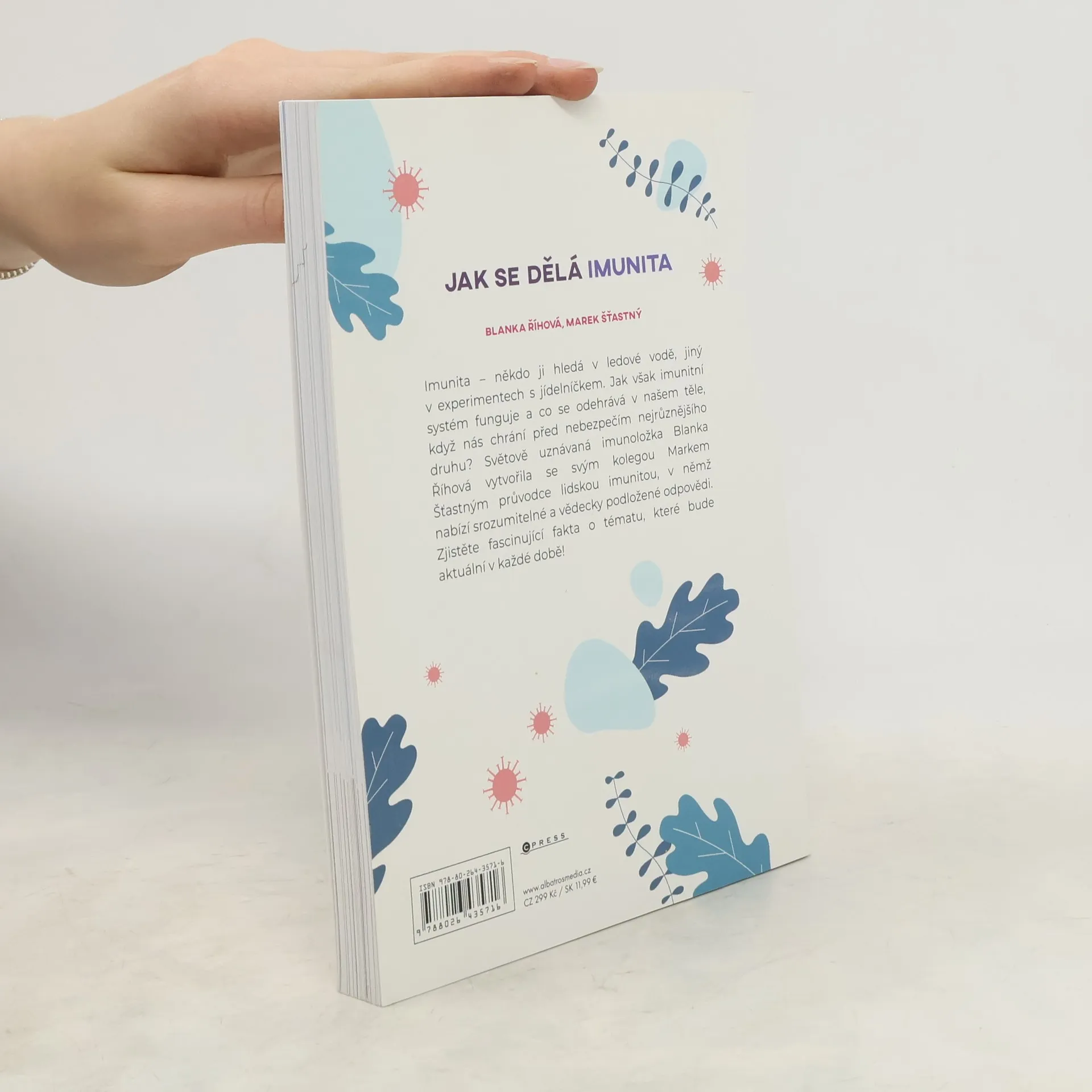 Imunita – někdo ji hledá v ledové vodě, jiný v experimentech s jídelníčkem. Jak však imunitní systém funguje a co se odehrává v našem těle, když nás chrání před nebezpečím nejrůznějšího druhu? Světově uznávaná imunoložka Blanka Říhová vytvořila se svým kolegou Markem Šťastným průvodce lidskou imunitou, v němž nabízí srozumitelné a vědecky podložené odpovědi. Věděli jste třeba, že imunitní systém má – podobně jako náš mozek – paměť, která může trvat celý život? Zjistěte další fascinující fakta o tématu, které bude aktuální v každé době!