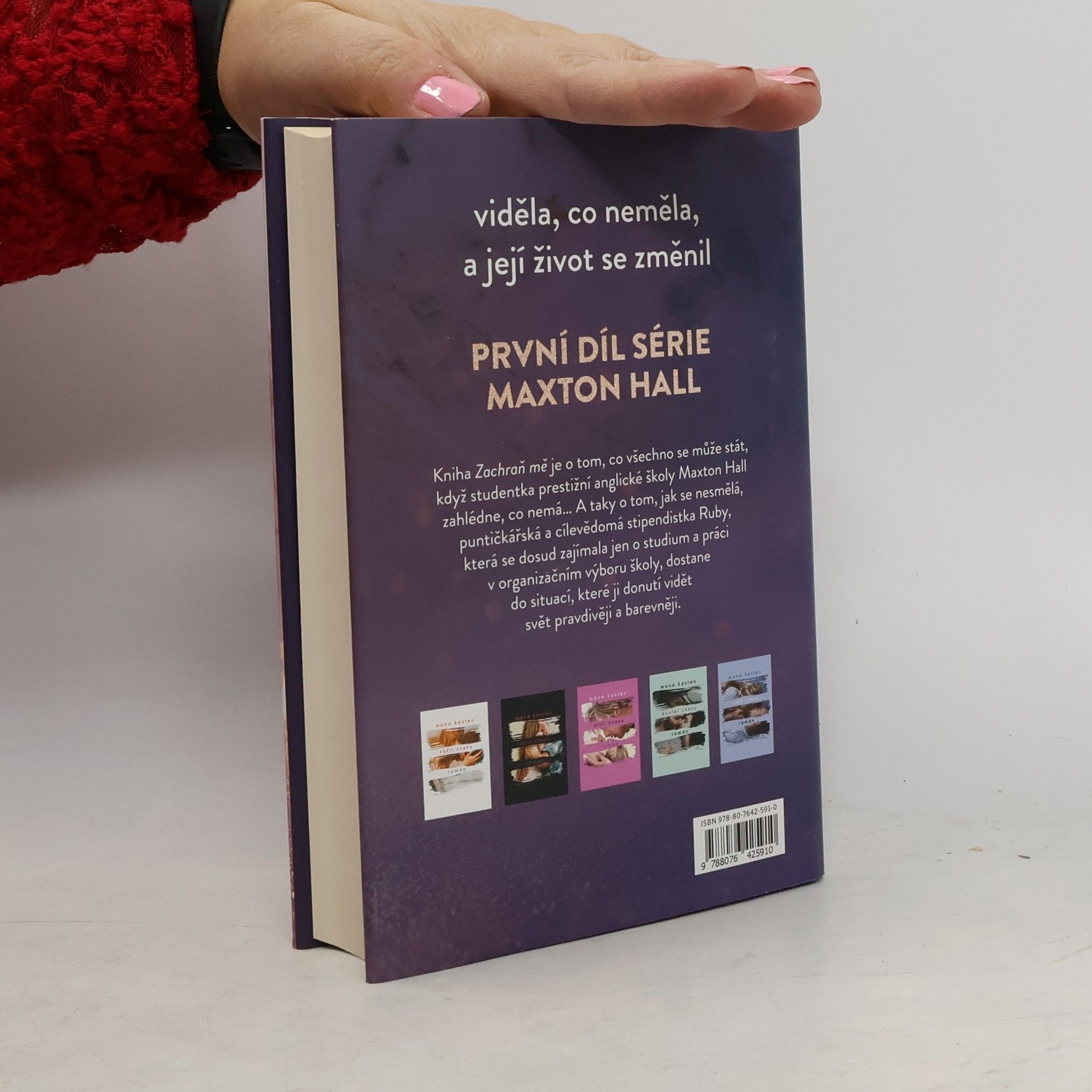 Kniha Zachraň mě je o tom, co se všechno může stát, když studentka prestižní školy Maxton Hall v Anglii uvidí, co nemá… Taky o tom, jak se nesmělá, puntičkářská a cílevědomá stipendistka Ruby, která se dosud zajímala jen o studium a práci v Organizačním výboru pro školu, dostane do situací, které ji donutí vidět svět pravdivěji a barevněji. Rodina Ruby je docela obyčejná, ale harmonická, zatímco James je dědicem starobylého oděvního impéria a příkladem zkaženého, nevychovaného mladíka, který se snaží „užít si poslední rok na střední“. Kniha je o jejich vzájemné přitažlivosti a štěstí, které spolu nacházejí, ale o které musejí bojovat, a stále znovu jim uniká. Je o tom, jaké to je, projít se po prvé kampusem oxfordské univerzity, na které Ruby od dětství touží studovat, a přáních, která se možná splní. Jaké je, když se potkají na přijímacích zkouškách na Oxford daleko od domova… Kniha vás zve do světa dramatické první lásky, romantiky studentských let a napínavých okolností, které svět Ruby a Jamese obklopují.