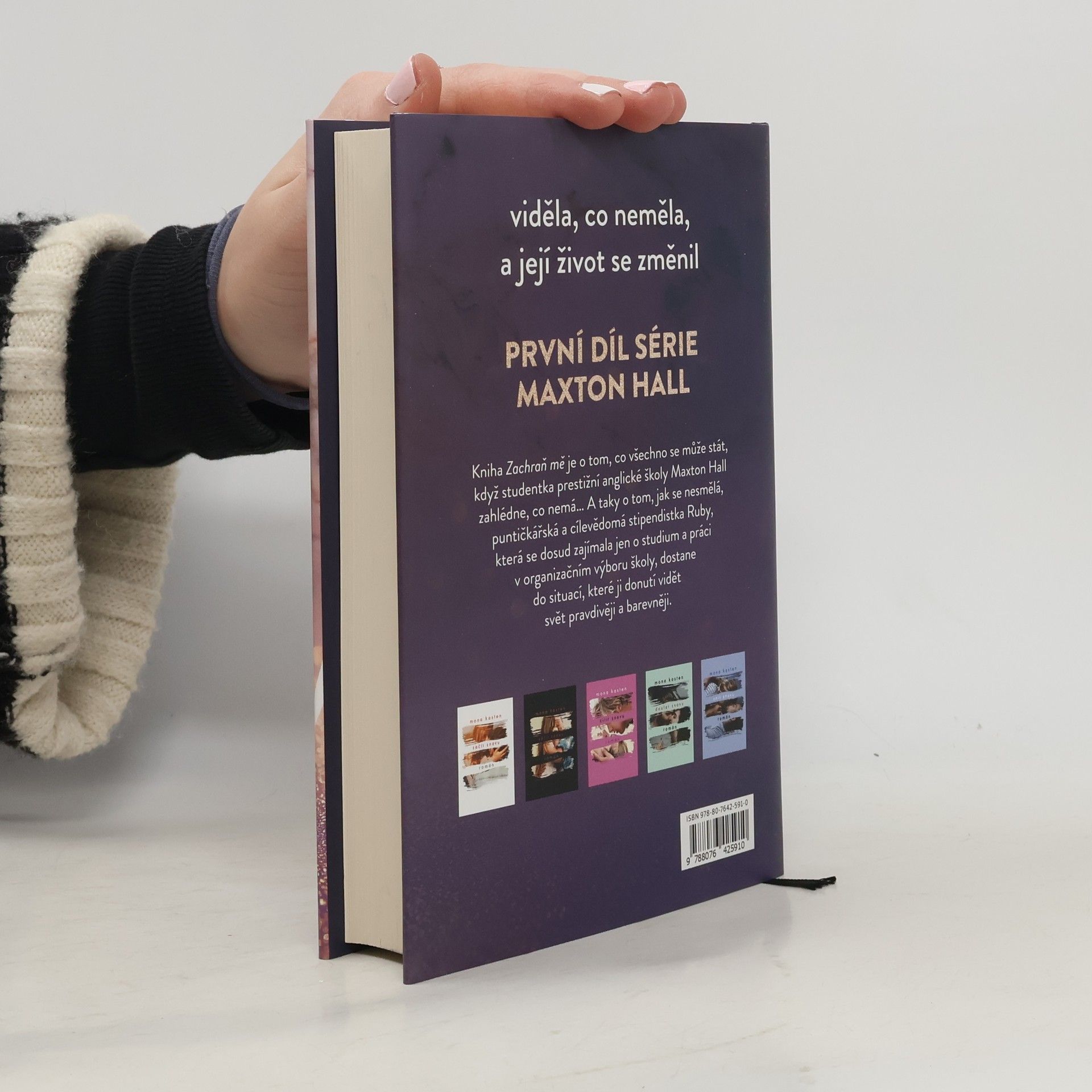 Kniha Zachraň mě je o tom, co se všechno může stát, když studentka prestižní školy Maxton Hall v Anglii uvidí, co nemá… Taky o tom, jak se nesmělá, puntičkářská a cílevědomá stipendistka Ruby, která se dosud zajímala jen o studium a práci v Organizačním výboru pro školu, dostane do situací, které ji donutí vidět svět pravdivěji a barevněji. Rodina Ruby je docela obyčejná, ale harmonická, zatímco James je dědicem starobylého oděvního impéria a příkladem zkaženého, nevychovaného mladíka, který se snaží „užít si poslední rok na střední“. Kniha je o jejich vzájemné přitažlivosti a štěstí, které spolu nacházejí, ale o které musejí bojovat, a stále znovu jim uniká. Je o tom, jaké to je, projít se po prvé kampusem oxfordské univerzity, na které Ruby od dětství touží studovat, a přáních, která se možná splní. Jaké je, když se potkají na přijímacích zkouškách na Oxford daleko od domova… Kniha vás zve do světa dramatické první lásky, romantiky studentských let a napínavých okolností, které svět Ruby a Jamese obklopují.