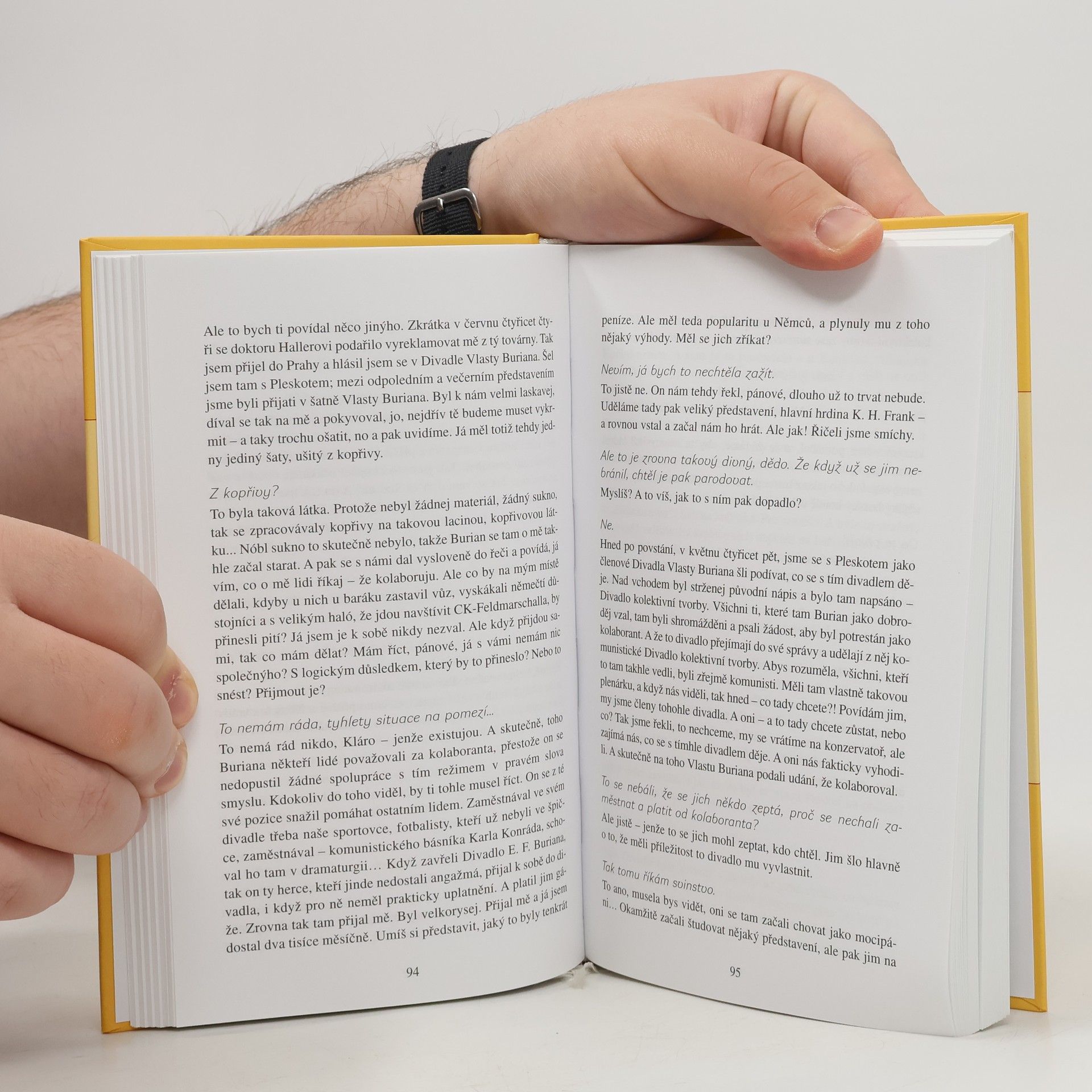 O iluzi, že se u Lukavských v kuchyni mluví jinak než u nich doma, připraví Klára čtenáře hned na první stránce. Nejspíš záměrně, aby zdůraznila, že i ona má „normálního“, byť velmi slavného dědečka. Kdo si chce vychutnat krásu českého jazyka v Mistrově interpretaci, musí si ke knížce přikoupit vstupenku do divadla...
