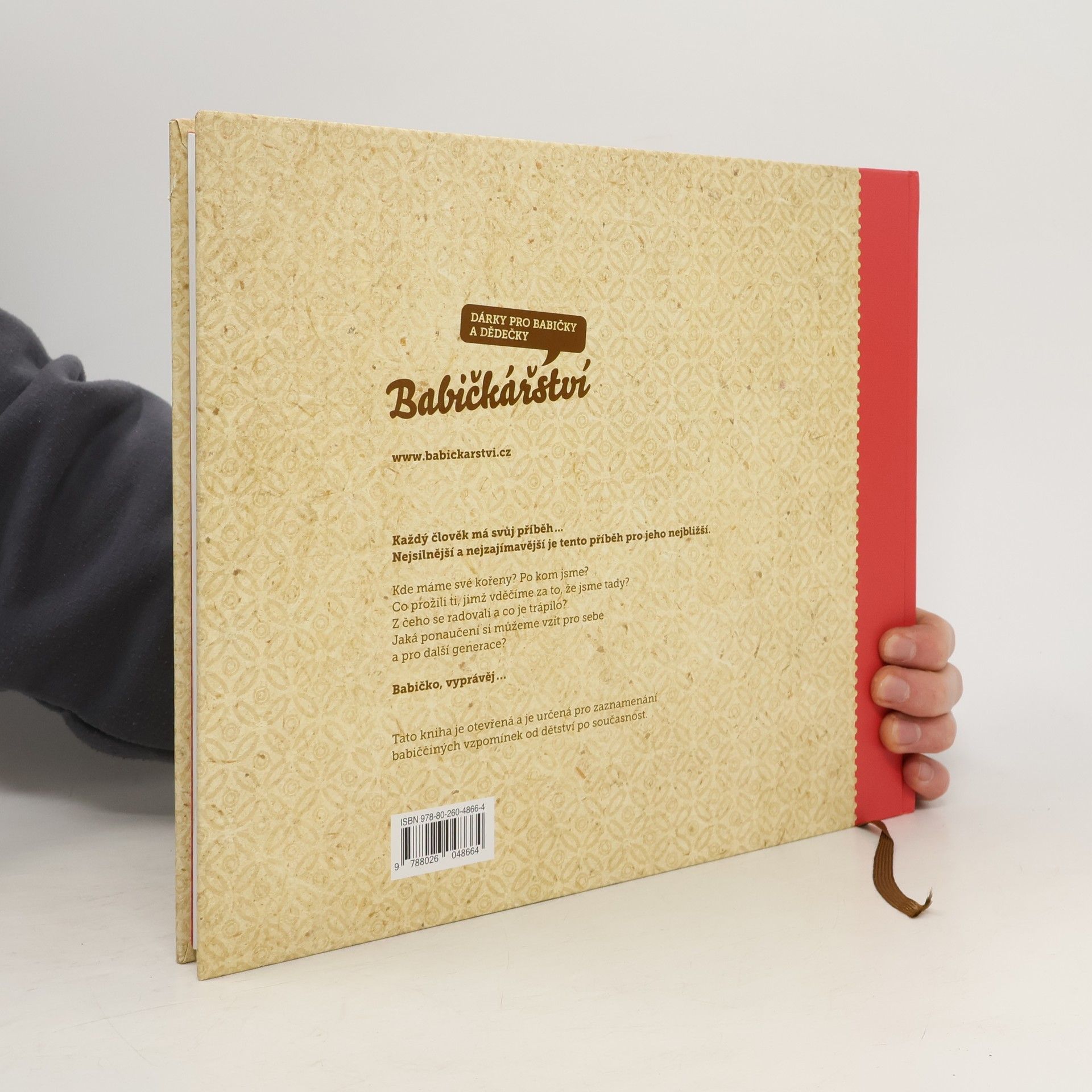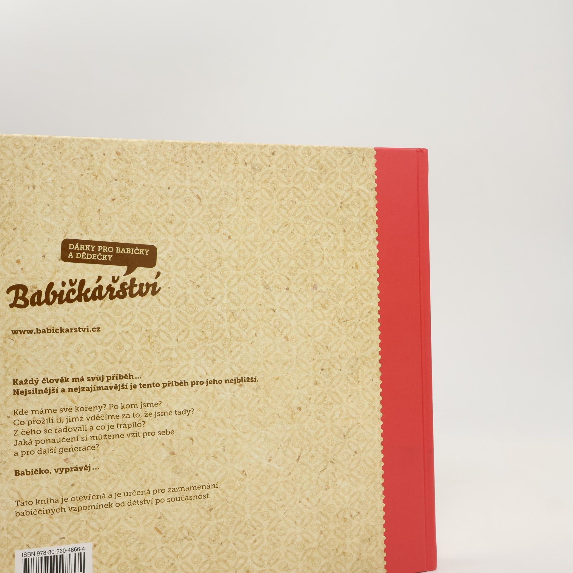 Otevřená kniha pro zaznamenání vzpomínek vaší babičky od dětství po současnost. Babička bude moci sama nebo s vaší pomocí vyplňovat knížku a odpoví tak na celou řadu pečlivě vybraných otázek. Namátkou: čím chtěla být, když byla malá, jací byli její rodiče a prarodiče, kde si hrála, kdy potkala dědečka – svého muže, co spolu zažili, jak vnímala babička historické události, co se podle ní dnes změnilo oproti době jejího mládí… Kniha se stane pro vaší babičku zábavou a pro celou vaši rodinu cenným pokladem. Doprovodné obrázky a dobové fotografie pomáhají probouzet vzpomínky. V knížce je prostor na přidání vlastních fotografií. „Babičko, vyprávěj“ je unikátním dárkem pro všechny babičky.