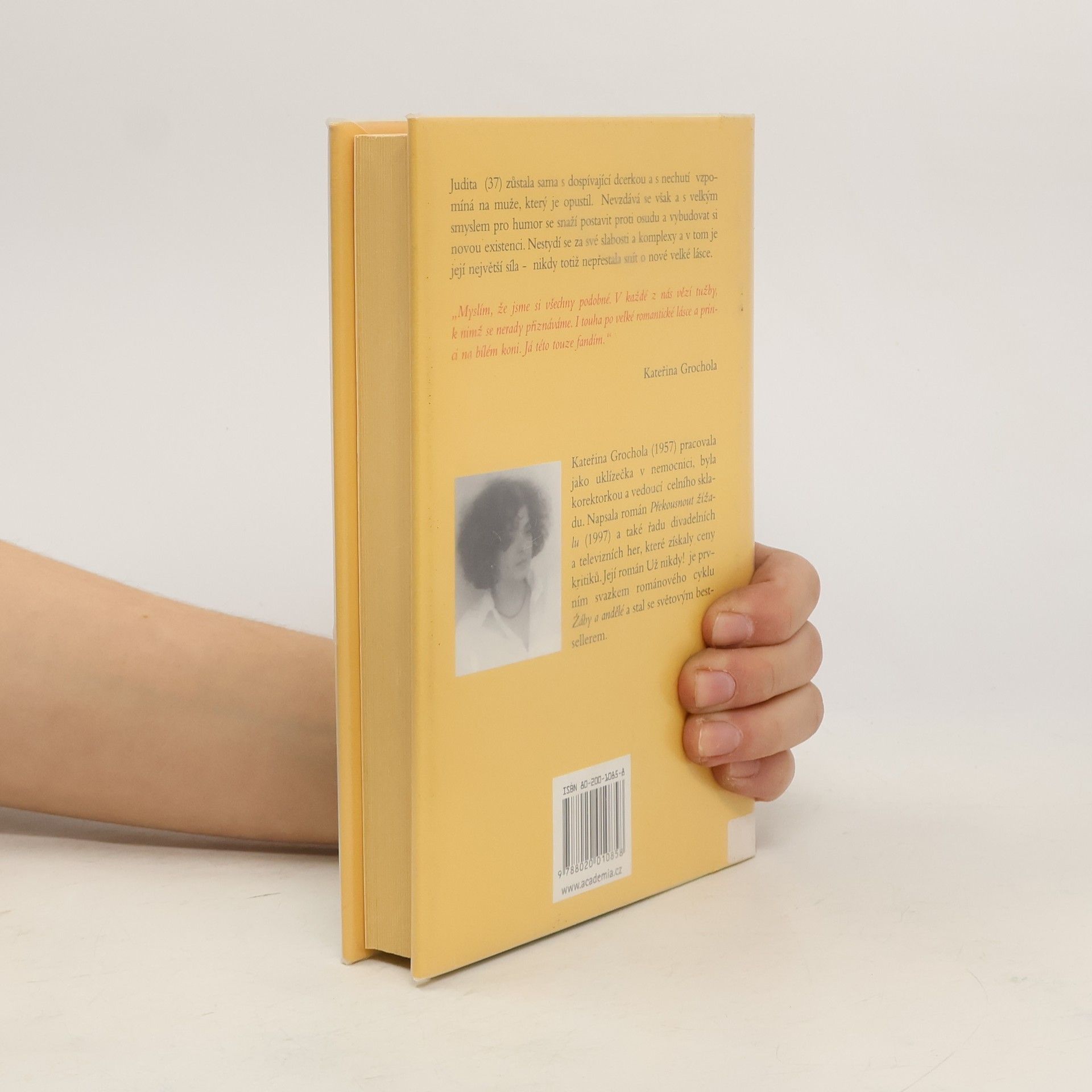 Judita (37) zůstala sama s dospívající dcerkou a s nechutí vzpomíná na muže, který je opustil. Nevzdává se však a s velkým smyslem pro humor se snaží postavit proti osudu a vybudovat si novou existenci. Nestydí se za své slabosti a komplexy a v tom je její největší síla - nikdy totiž nepřestala snít o nové velké lásce. Takový je stručný obsah románu známé polské spisovatelky Kateřiny Grocholy (1957), který se záhy po svém vydání stal světovým bestsellerem. Překlad Helena Stauchová.