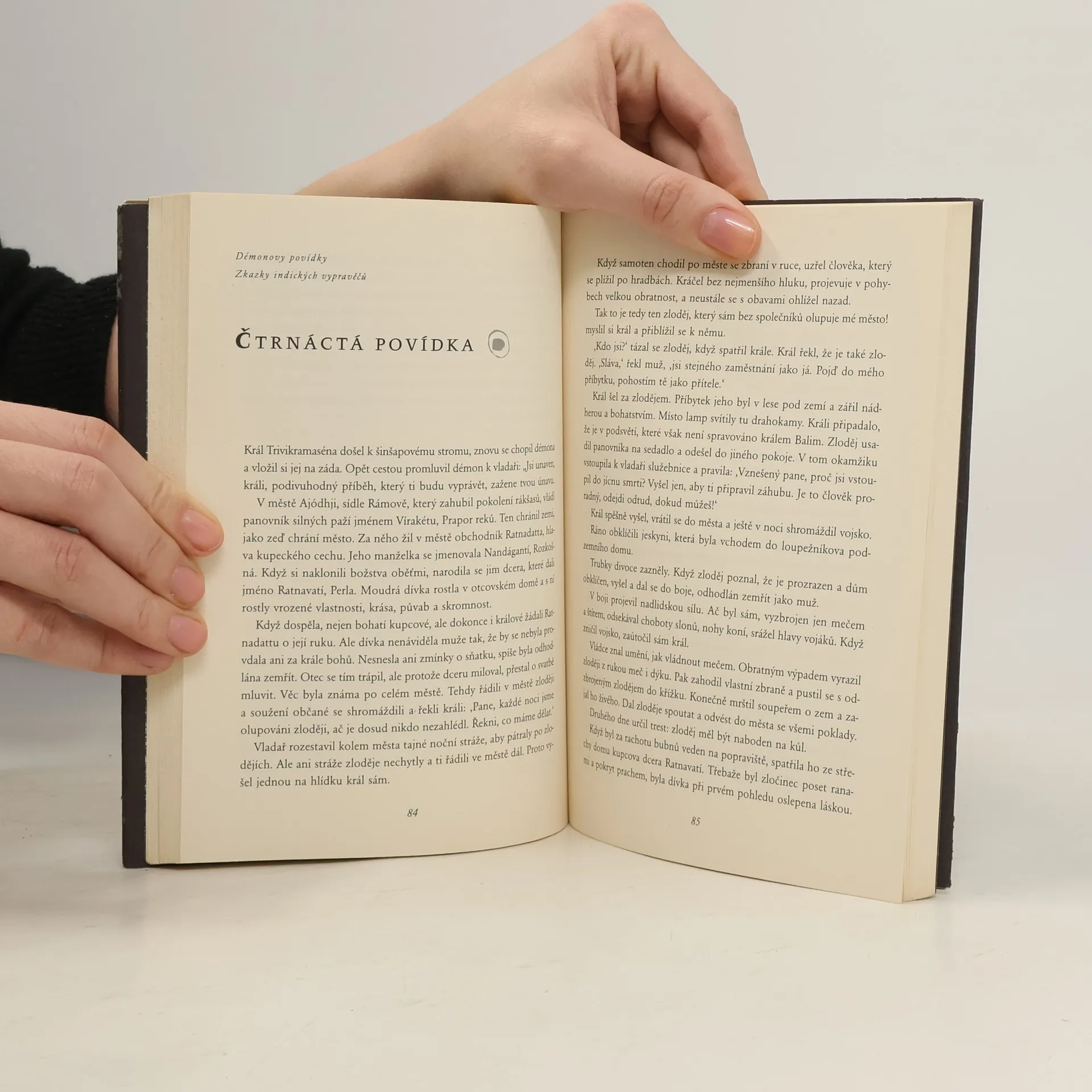 Soubor indických povídek s etickým poselstvím, jejž v této podobě sepsal a uspořádal v 11. stol. básník Somadéva. 24 kratších textů, orámovaných 25., má svůj původ v archaické tradici lidové slovesnosti. Ctnostný král Trivikramaséna se nezbaví obtížného démona, dokud nerozluští otázky z jeho vyprávění. Původně veršovaný text byl užíván k morální výchově na královských dvorech ve staré Indii. Překlad českého orientalisty pochází přibližně z 50. let 20. stol. Zasvěcený úvod a poznámky.