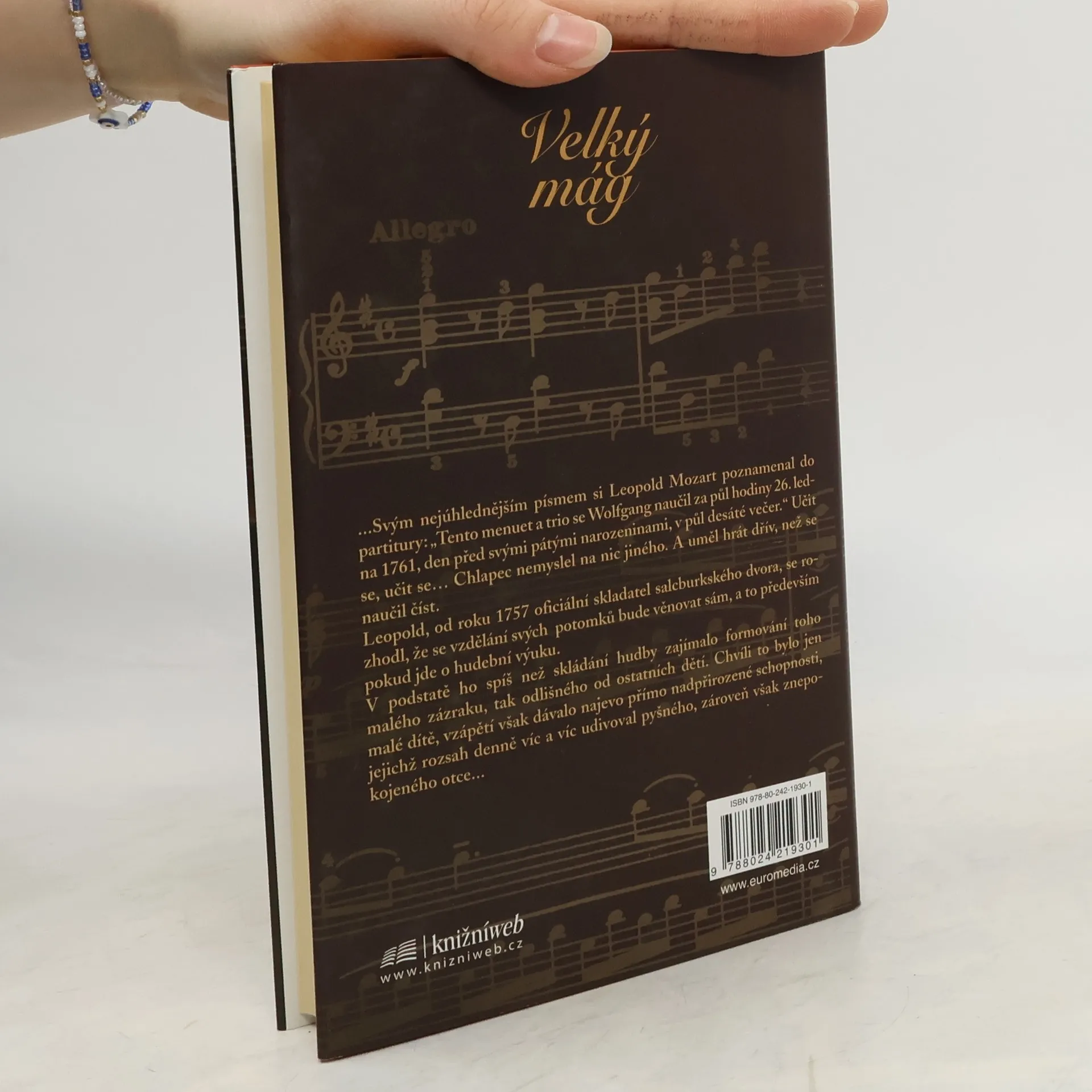 První díl tetralogie slavném rakouském hudebním géniovi před čtenářem rozprostírá malebnou fresku vídeňského hudebního světa. Je mu sedm let, už hodně cestoval a koncertoval v mnoha městech -- v Praze, ve Vídni, ve Frankfurtu.... a v duši chová tajemství, svůj poklad, jenž ho chrání před realitou světa: smyšlené království, zachycené na mapě, kterou stále nosí u sebe, království, jehož je panovníkem. Jmenuje se Wolfgang Amadeus Mozart.