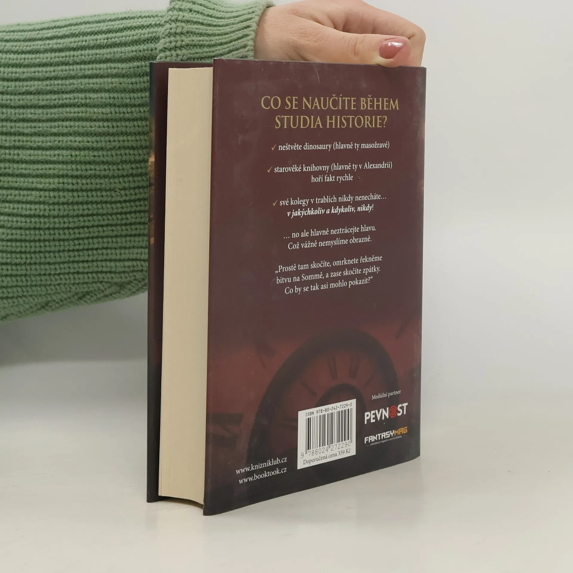 Pod zdánlivě nevinnou rouškou Svaté Marie probíhá tak trochu jiný historický výzkum. Tamní zaměstnanci v žádném případě nepřipouštějí, že by šlo o cestování v čase, místo toho zkoumají „významné historické události v příslušné době“. Ne vždycky se jim daří zachovat zdání neškodných výstředníků – třeba jen proto, že když je dlouho klid, vzápětí jejich vinou něco hodně hlasitě vybuchne, jelikož k tomu prostě mají sklon. Seznamte se proto s badateli z Ústavu pro výzkum dějin, kteří se potulují dávnými časy, a kde se vyskytnou, tam vnášejí jednu pohromu za druhou. Jejich cílem je pozorovat a zaznamenávat, aby našli odpovědi na mnohé nezodpovězené otázky dějin, rozhodně ne umírat. Jenže stačí jediný neprozřetelný krok a historie přechází do protiútoku, při kterém už jde o život. A jak vědci brzy zjistí, nebojují pouze s dějinami, které proti nim štvou dinosaury i padající kameny. Vydejte se s nimi na katastrofickou trajektorii, jež je zavádí z Londýna 11. století do první světové války a z období křídy k požáru Alexandrijské knihovny. Kamkoli historici vstoupí, tam zaručeně vypuká chaos.