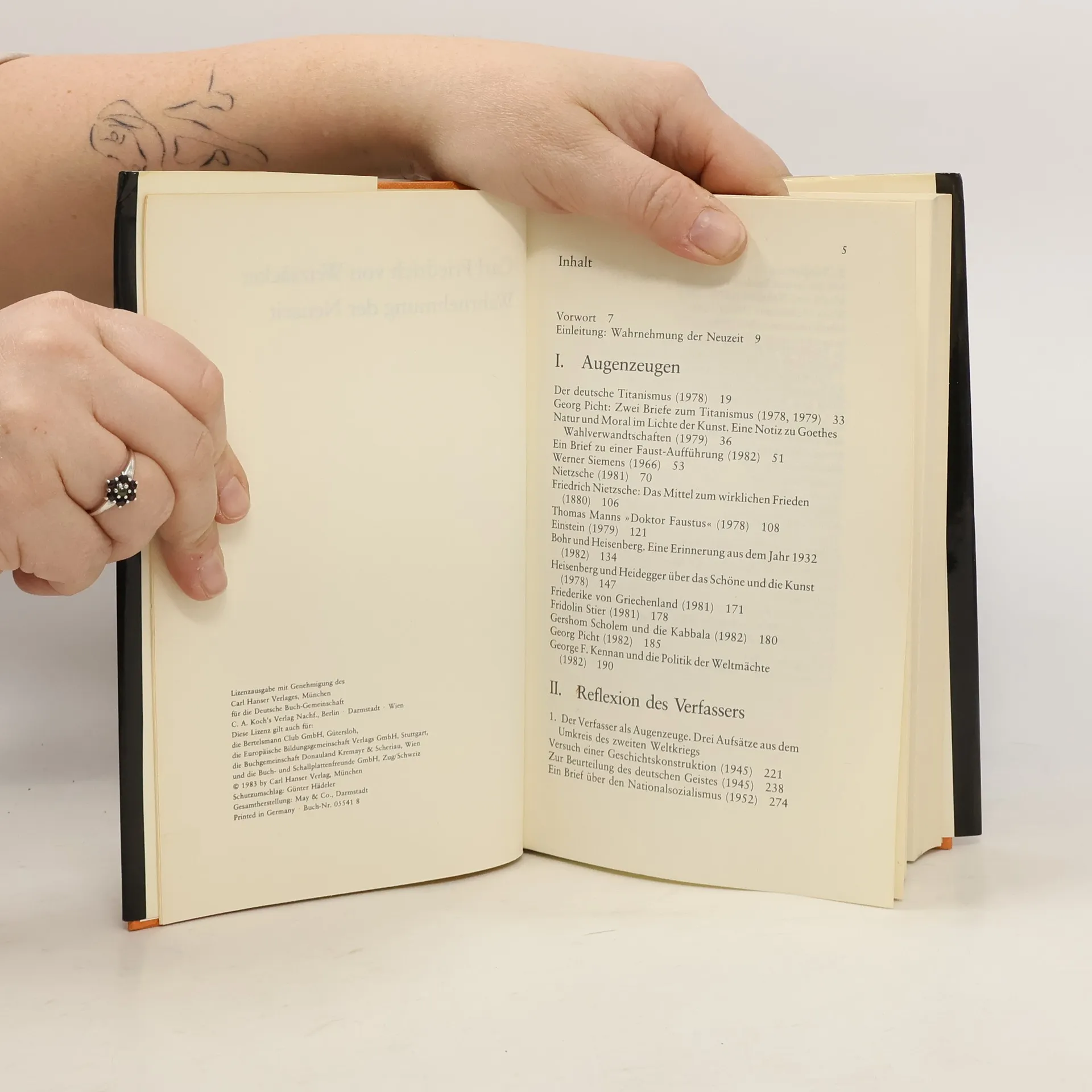 Mit diesem Band rückt Weizsäcker den kulturellen Aspekt der Krise der Neuzeit, die sich in der Kunst widerspiegelt, ins Zentrum seiner Betrachtung. Der neuzeitliche Titanismus, der Versuch, die Lebensbedingungen des Menschen radikal zu revolutionieren, führt unfreiwillig zur Bedrohung der Menschheit. Weizsäcker will Bewußtsein dafür wecken, daß es Wege aus dieser Krise gibt.