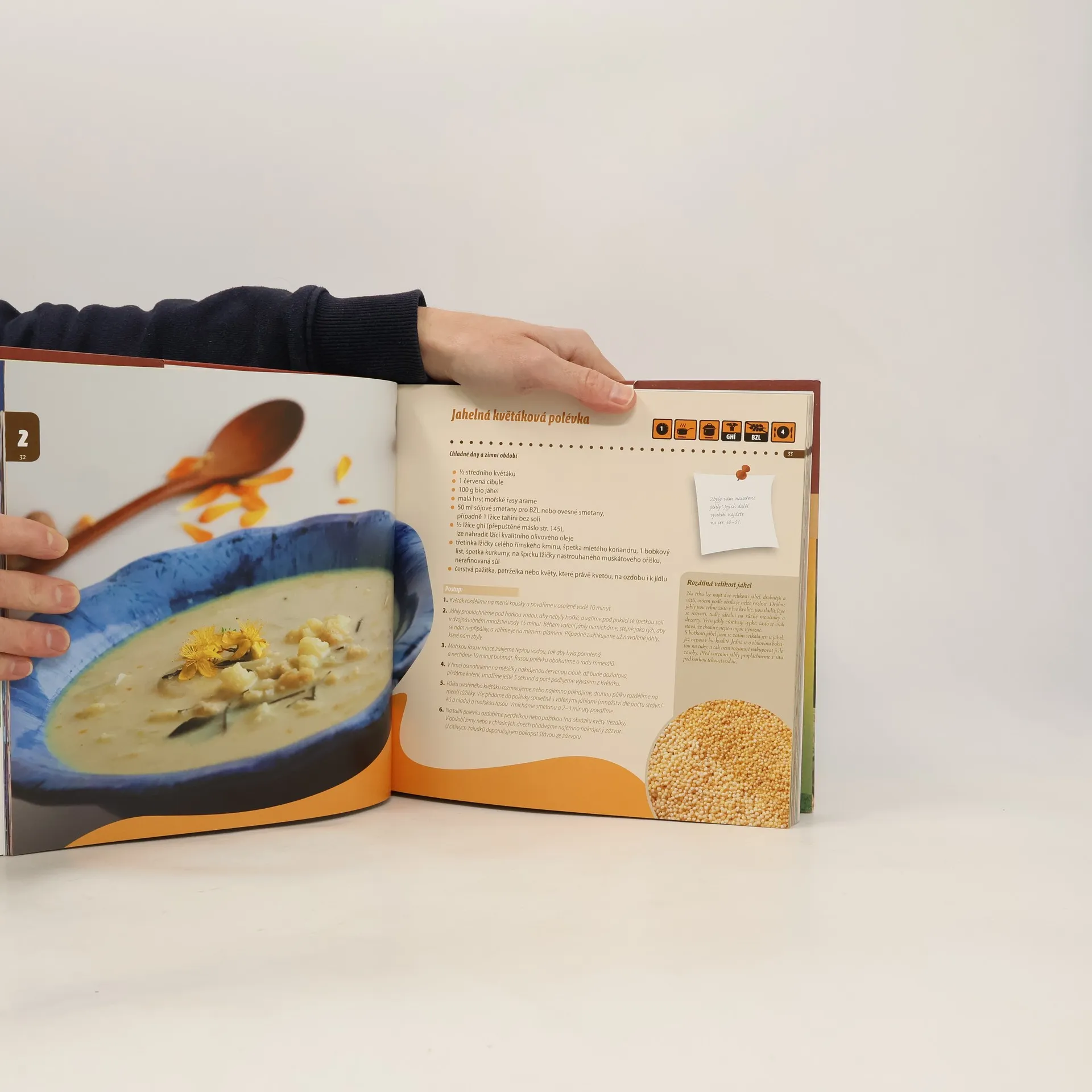 Kuchařka Víme , co jíme - Vědomé vaření chce čtenářům ukázat, jak můžeme šetřit peníze, své zdraví a přírodu tím, že maximálně využijeme navařené suroviny. Zaměřuje se hlavně na obiloviny.