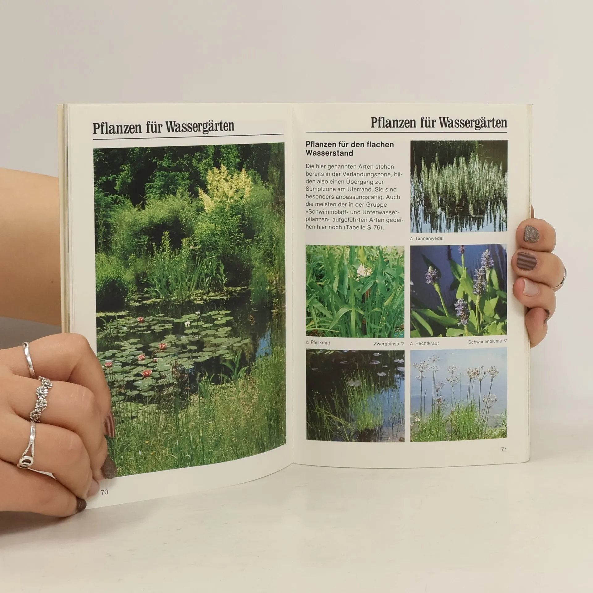 Verschiedene Wassergärten - vom Folien- oder Naturteich bis zum Sumpfbeet oder Bach: Technik, Wasserqualität, einheimische oder exotische Bepflanzung, Tiere in und am Gartenteich; Pflegekalender.