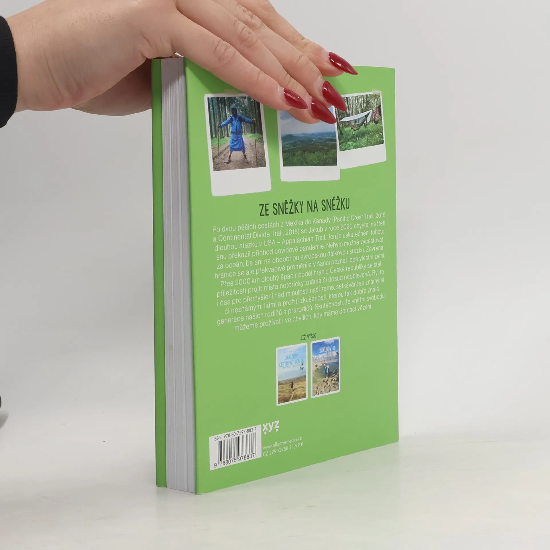 Ze Sněžky na Sněžku. Po dvou pěších cestách z Mexika do Kanady se Jakub Čech v roce 2020 chystal na svou třetí dlouhou stezku v USA – Appalachian Trail. Jenže uskutečnění tohoto snu překazil příchod covidové pandemie. Nebylo možné vycestovat za oceán, ba ani na obdobnou evropskou dálkovou stezku. Zavřená hranice se ale překvapivě proměnila v šanci poznat lépe vlastní zemi, a přes 2000 kilometrů dlouhý špacír podél hranic České republiky tak byl pro Jakuba příležitostí projít místa notoricky známá, či dosud neobjevená.
