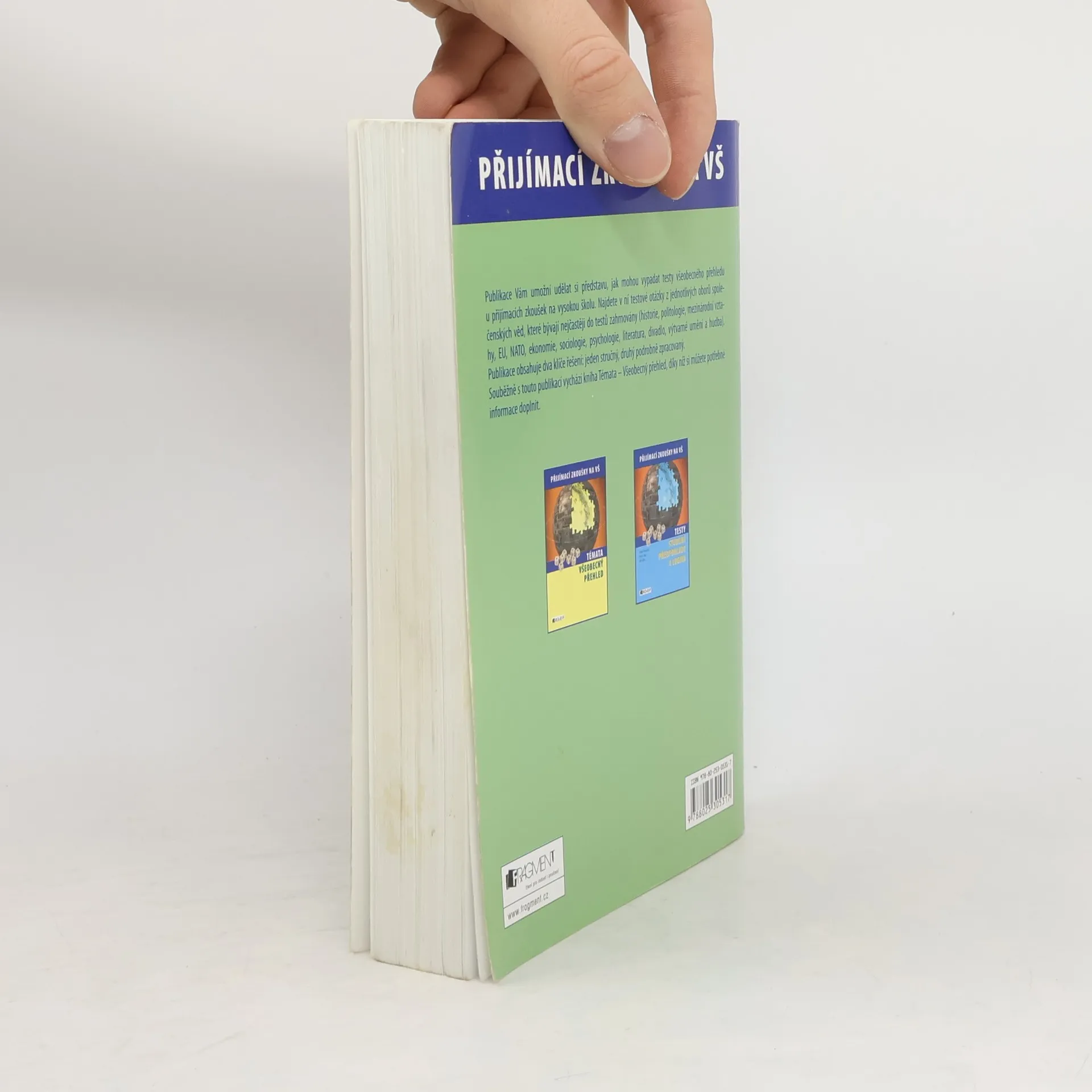 Publikace Vám umožní udělat si představu, jak mohou vypadat testy všeobecných předpokladů u přijímacích zkoušek na vysokou školu. Najdete v ní testové otázky z jednotlivých oborů společenských věd, které bývají nejčastěji do testů zahrnovány (historie, politologie, mezinárodních vztahů, EU, NATO, ekonomie, sociologie, psychologie, literatury, divadla, výtvarného umění a hudby). Publikace obsahuje dva klíče řešení: jeden stručný, druhý podrobně zpracovaný. Souběžně s publikací vychází knížka Témata všeobecného přehledu, díky níž si můžete potřebné informace doplnit.