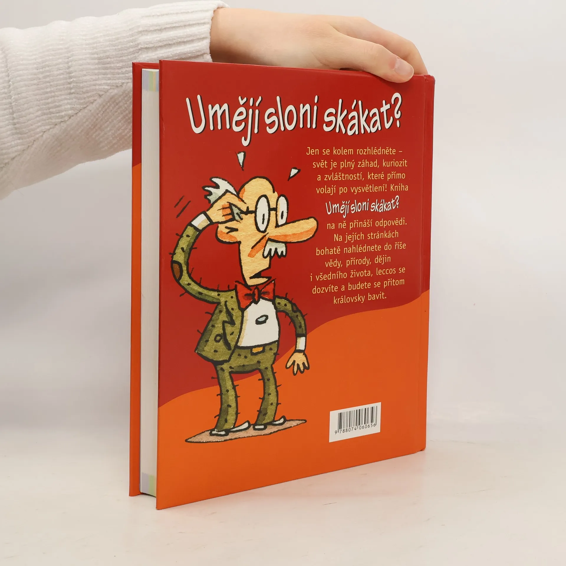Pozor, zvídaví čtenáři, hledači maličkostí a osvícení pátrači po pozoruhodných faktech! Jen se rozhlédněte kolem – svět je plný otázek a záhad, jež přímo volají po tom, aby je člověk vysvětlil. A nyní se této výzvy zhostil David Feldman, guru populární kultury, a vůbec poprvé vám nabízí osvěžující odpovědi na veškeré dotěrné otázky, jež vám v noci nedají spát. Překvapte známé i sebe sama odpověďmi na stovky matoucích otázek týkajících se jídla, sportu, populární kultury, přírody, jazyka, lidského těla, vědy, dějin i dalších oblastí. UMĚJÍ SLONI SKÁKAT? je vpravdě nepostradatelná kniha pro nevyléčitelně zvídavé čtenáře a lidi, kteří chtějí přijít věcem na kloub. Nyní se můžete ponořit do této důmyslné sbírky neobvyklých otázek, pozoruhodných odpovědí, bizarních, ale pravdivých detailů a nevšedních faktů.