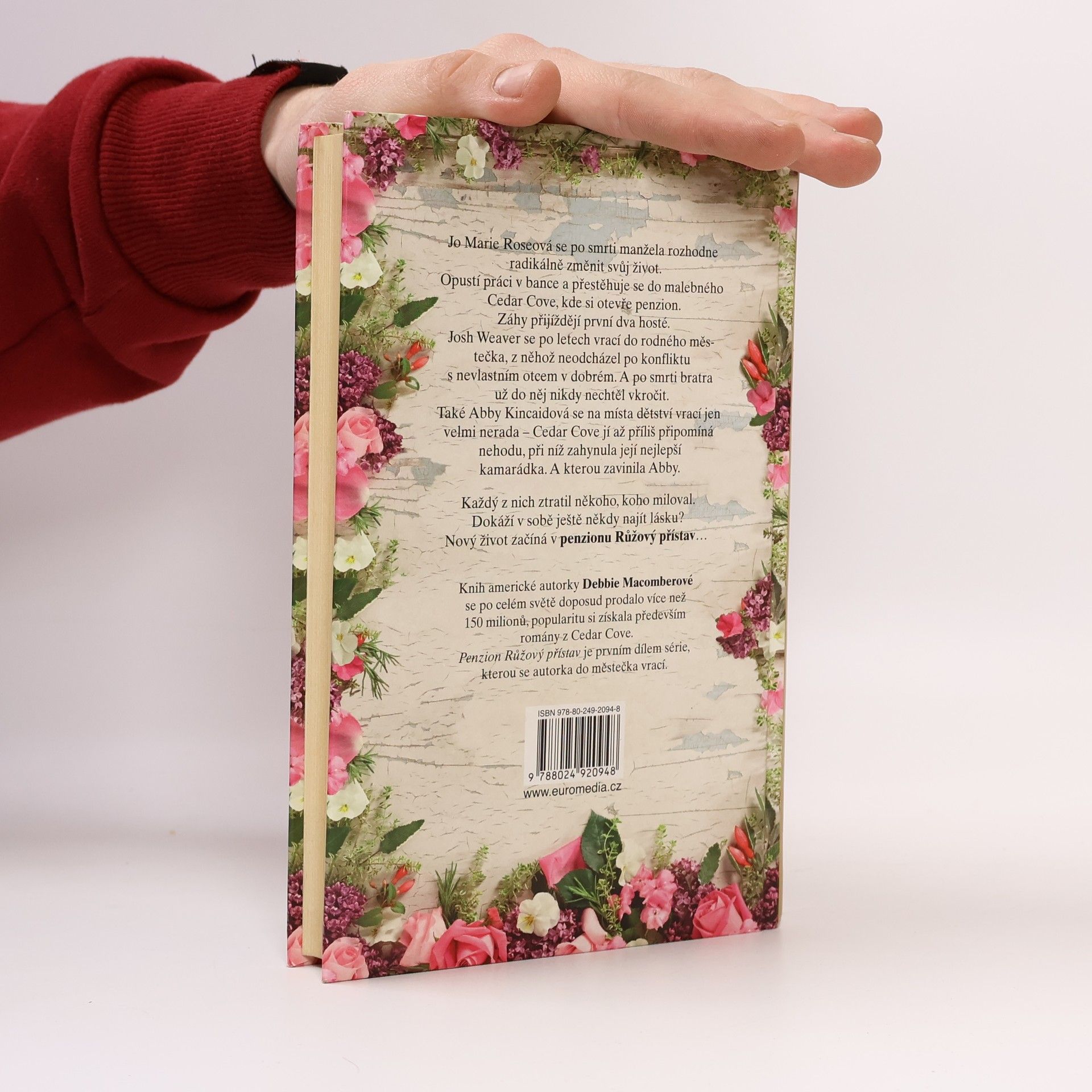 Jo Marie Roseová se po smrti manžela rozhodne radikálně změnit svůj život. Opustí práci v bance, přestěhuje se do Cedar Cove a otevře si zde malý penzion. Záhy přijíždějí první dva hosté. Josh se po letech vrací do rodného městečka, z něhož neodcházel po konfliktu s nevlastním otcem v dobrém a do kterého se po smrti bratra už nikdy nechtěl vrátit. Také Abby se na místa svého dětství vrací částečně proti své vůli - Cedar Cove jí až příliš připomíná tragédii, kterou kdysi způsobila. Ani jeden z nich netuší, že jejich nový život začíná v penzionu Růžový přístav. Knih americké bestselleristky Debbie Macomberové se po celém světě doposud prodalo více než 150 milionů. Popularitu si získala především sérií z Cedar Cove. Penzion Růžový přístav je prvním dílem série, kterou se autorka do městečka vrací.
