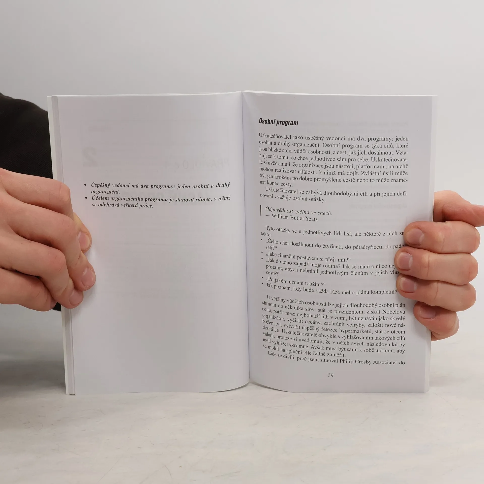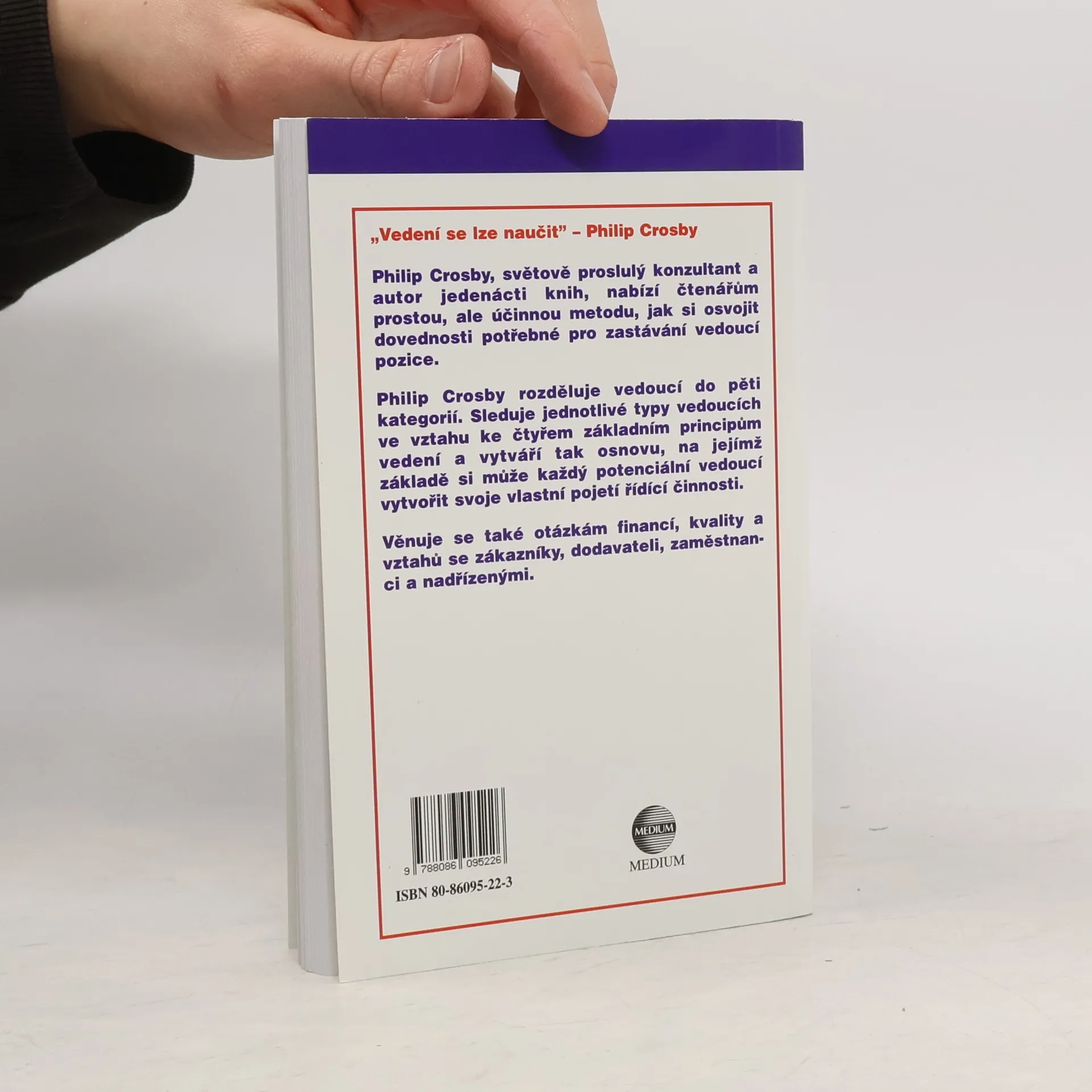 Philip Crosby, světově proslulý konzultant a autor jedenácti knih, nabízí čtenářům prostou, ale účinnou metodu, jak si osvojit dovednosti potřebné pro zastávání vedoucí pozice.