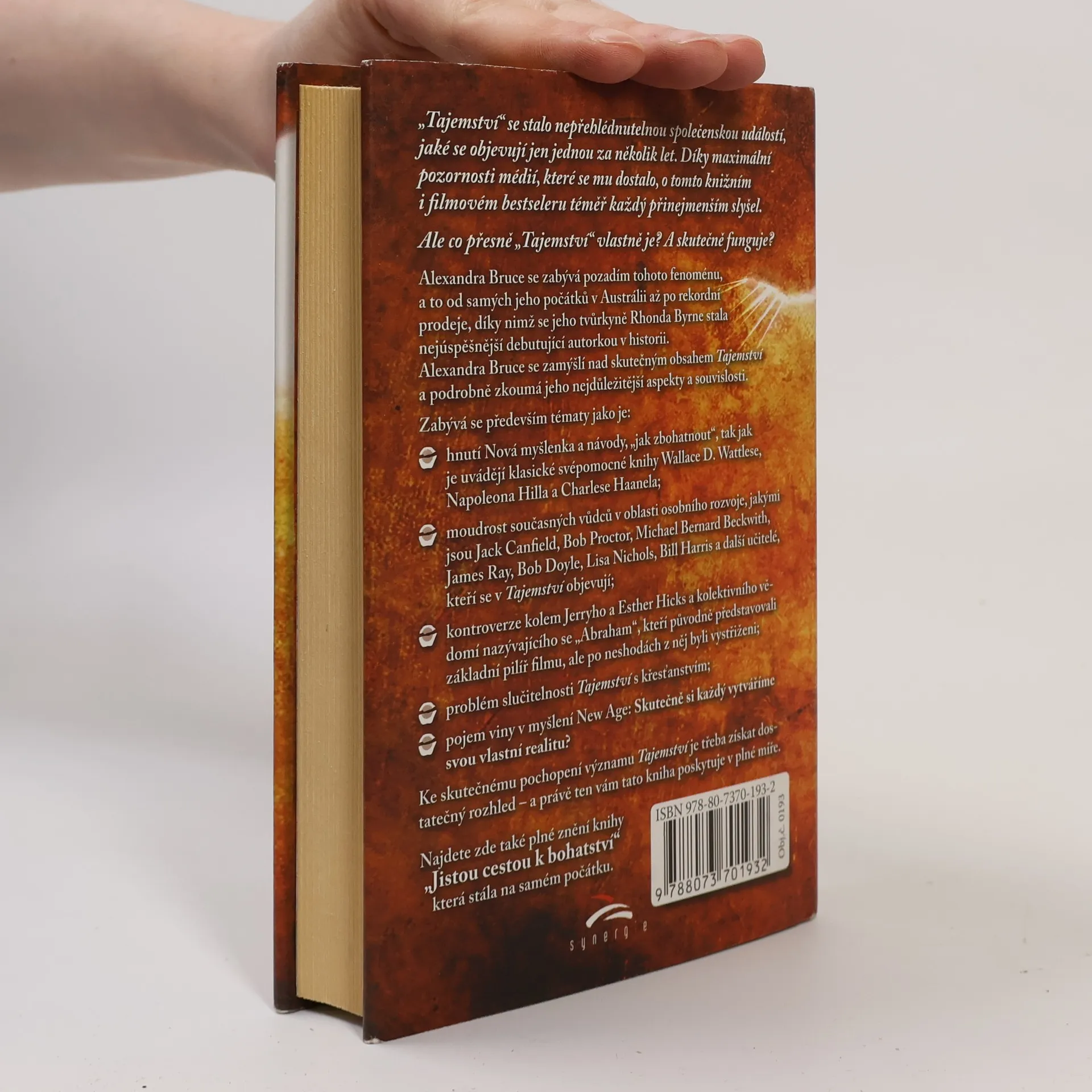 "Tajemství" se stalo nepřehlédnutelnou společenskou událostí, jaké se objevují jen jednou za několik let. Díky maximální pozornosti médií, které se mu dostalo, o tomto knižním a filmovém bestseleru téměř každý přinejmenším slyšel. A.Bruce se zabývá pozadím tohoto fenoménu, a to od samých jeho počátků v Austrálii až po rekordní prodeje, díky nimž se jeho tvůrkyně Rhonda Byrne stala nejúspěšnější debutující autorkou v historii. Zamýšlí se nad skutečným obsahem Tajemství a podrobně zkoumá jeho nejdůležitější aspekty a souvislosti. Najdete zde také plné znění knihy "Jistou cestou k bohatství" od Wallace D.Wattlese.