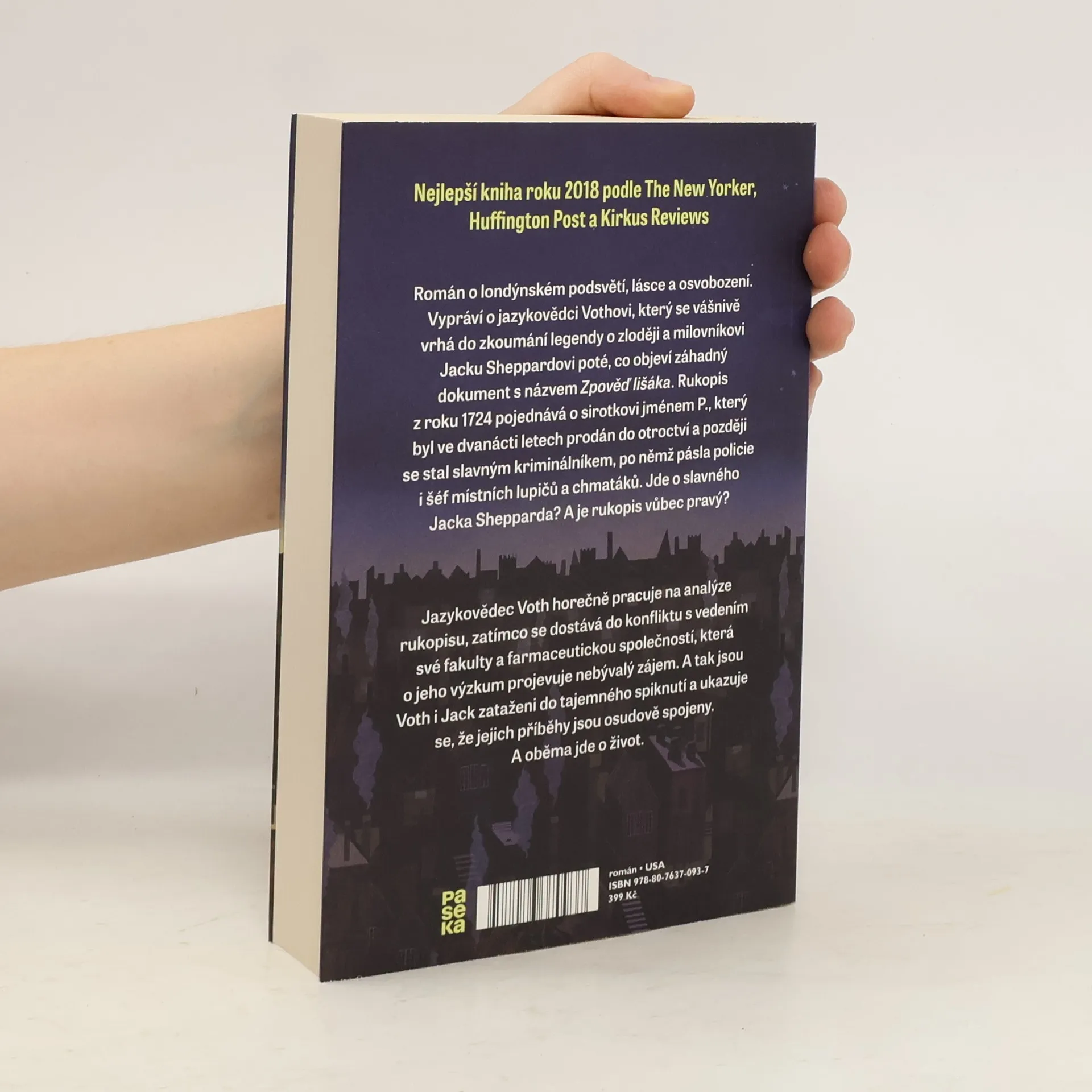 Lechtivý historický román o lásce, genderu a osvobození. Odehrává se ve dvou časových obdobích. První vypráví o jazykovědci doktoru Vothovi, který se v naší současnosti snaží vzpamatovat z rozchodu a obsesivně se vrhá do zkoumání života Jacka Shepparda, legendárního zloděje a milovníka z osmnáctého století. Nikdo totiž nezná skutečný Jackův příběh, jeho výpověď ani přiznání se nikdy nenašly. Tedy dokud doktor Voth neobjeví záhadný dokument s názvem Zpověď lišáka. Jde o rukopis z roku 1724 o sirotkovi jménem P., který byl ve dvanácti letech prodán do otroctví a později se z něj stal odvážný zloděj a bojovník za práva „monster“ – vlčích lidí či trpaslíků. Jeho protivníkem přitom není jen policie, ale i šéf všech londýnských zlodějíčků, který „monstra“ loví. Tak se P. postupně stává Jackem Sheppardem, jedním z nejznámějších a nejhledanějších zlodějů v historii. Doktor Voth horečně pracuje ve dne v noci na analýze rukopisu. Ale není jediný, kdo chce Jackův příběh a jeho pravou identitu odhalit. A tak jsou Jack i doktor Voth zataženi do případu tajemného spiknutí a ukazuje se, že jejich osudy jsou spojené – a oba je zachrání jen zázrak.