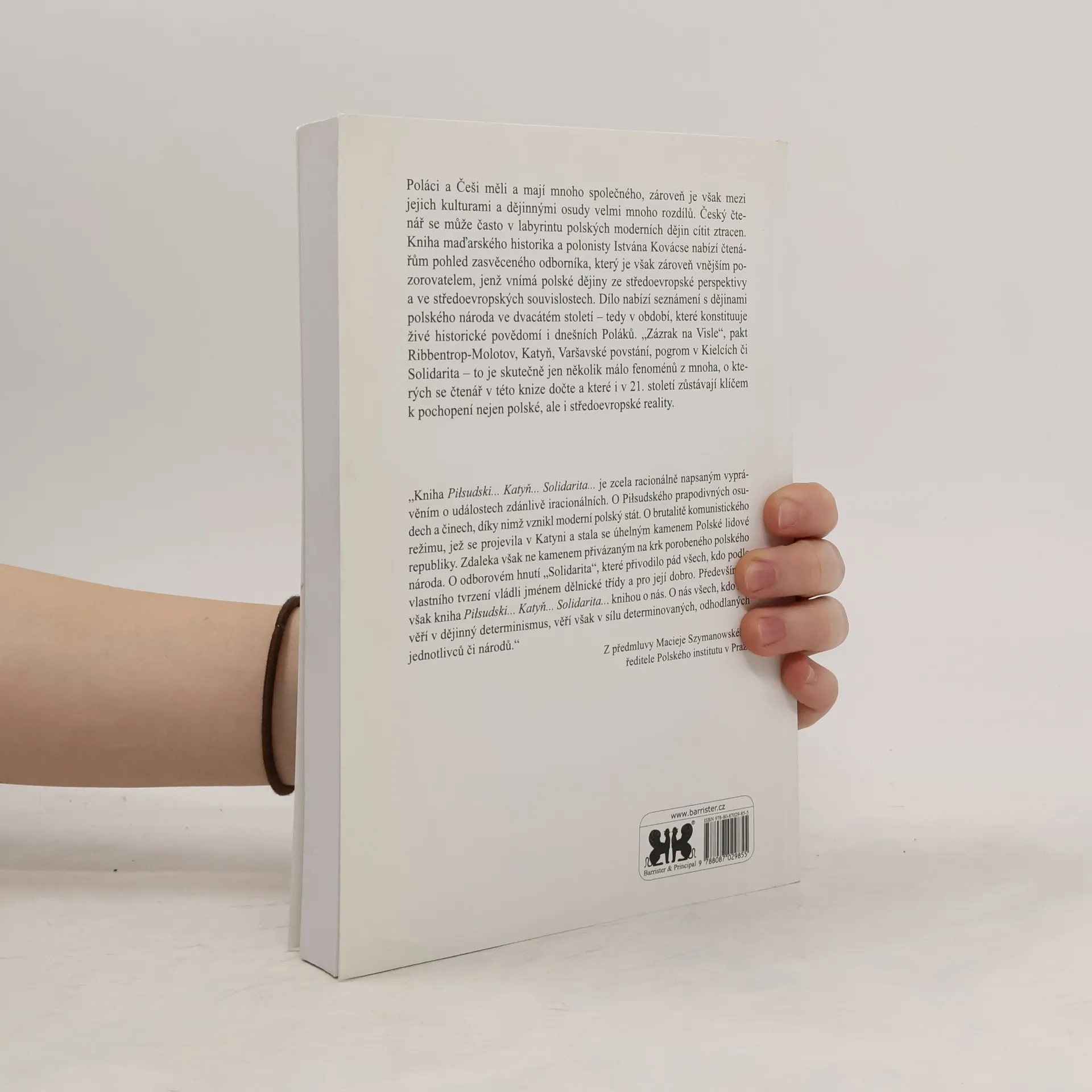 Poláci a Češi mají mnoho společného, ale také značné rozdíly ve svých kulturách a dějinách. Český čtenář se může v polských moderních dějinách cítit ztracen. Kniha maďarského historika Istvána Kovácse přináší pohled odborníka, který vnímá polské dějiny ze středoevropské perspektivy. Zaměřuje se na dvacáté století, které formuje historické povědomí Poláků. Čtenář se seznámí s klíčovými událostmi jako "Zázrak na Visle", pakt Ribbentrop-Molotov, Katyň, Varšavské povstání, pogrom v Kielcích a Solidarita, které zůstávají důležité pro pochopení polské i středoevropské reality. Publikace obsahuje všech třináct kapitol Kovácsovy knihy „Csoda a Visztulánál és a Balti-tengernél. A XX. századi lengyel történelem sorsfordulói“, vydané v roce 2006. V české verzi chybí předmluva a doslov maďarského vydání, ale obsahuje dvě nové kapitoly „Katyň“ a „Osvětim, neboli 1688 dní a nocí KL Auschwitz“. Místo doporučené maďarské literatury k polským dějinám je přidán seznam české literatury. Vydáno ve spolupráci s Polským institutem v Praze během čestného hostování Polska na veletrhu Svět knihy 2010. Vydání první.