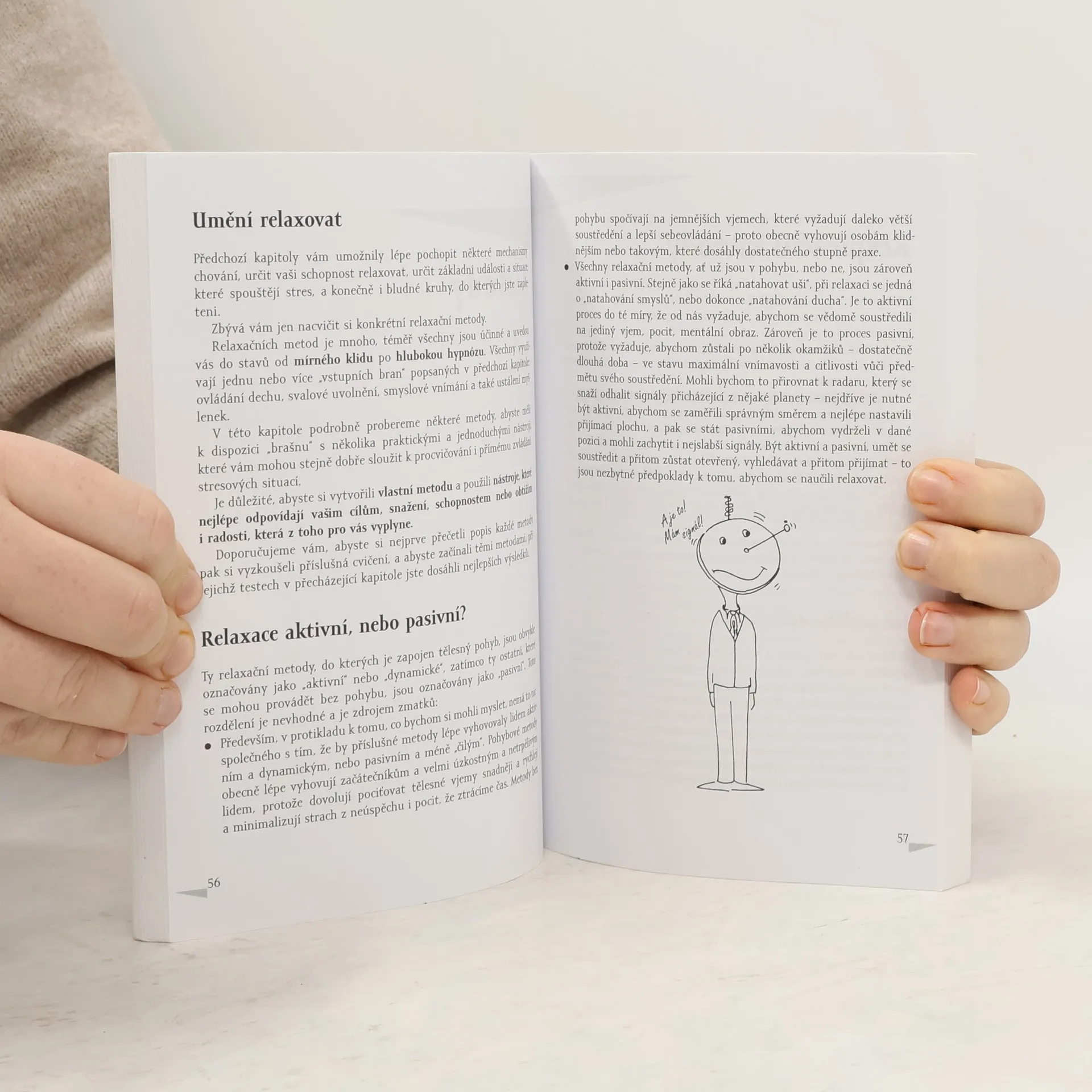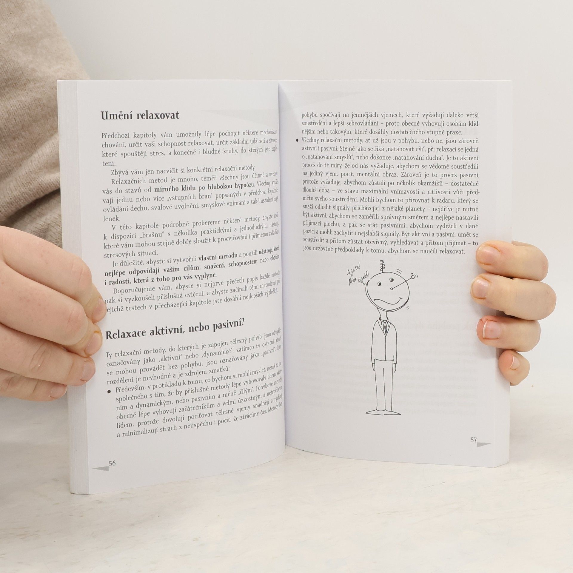 Autoři se obracejí k široké vrstvě čtenářů a vysvětlují, jak je využíváním metod relaxace možné lépe čelit různým napětím a stresu, vznětlivosti, neklidu a úzkosti, poruchám spánku a trávení, spojenými s přetížením z práce a při studiu, a dokazují, že správně vykonávaná relaxace zároveň podporuje schopnost koncentrace a napomáhá účinně myšlenkovým procesům. Seznamují čtenáře s účinnými metodami relaxace, které je možno jednoduše provádět v každodenním životě, a výklad doprovázejí příklady, ukázkami situací, cvičeními a radami. První část knihy obsahuje různé testy (respirační, kontrakční a dekontrakční aj). s cvičeními a pomáhá čtenáři určit si vlastní potřeby relaxace, druhá část podrobně vysvětluje relaxační metody a uvádí příklady i cvičení, třetí část podává návod, jak využívat metody v každodenním životě pro uvolnění v určitých situacích, k okamžitému překonání stresu apod.
