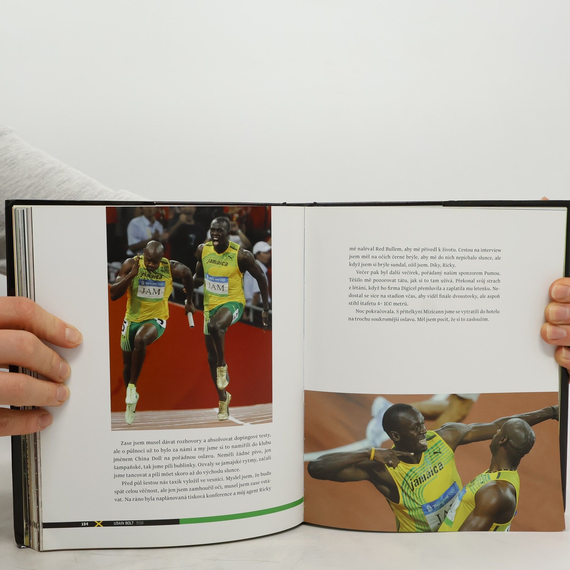 Výpravná publikace se stovkami fotografií. Osm dní … tři zlaté medaile … tři světové rekordy … zpráva o nejrychlejším sprinterovi všech dob ohromila celou planetu. "Usain Bolt - nejrychlejší člověk na světě. Tohle mě vážně nikdy neomrzí poslouchat," libuje si trojnásobný olympijský vítěz v úvodu jedné z nejlepších sportovních knih, jaká v poslední době vyšla. Výpravnou knihu "MŮJ PŘÍBĚH: 9.58" dal Bolt dohromady v uplynulých dvou letech spolu s legendou britské sportovní žurnalistiky Shaunem Custisem. A jejich společné dílo dobře ilustruje, proč je jamajský šampion jedním z nejsympatičtějších lidí mezi světovou sportovní špičkou. Exkluzívní publikace plná fotografií přináší ojedinělé pohledy do zákulisí světového sportu a je doplněna názory a vzpomínkami klíčových lidí sprinterova života. Bolt otvírá své memoáry vtipnou úvahou o tom, že uběhnout sto metrů za devět vteřin a 58 setin skutečně není samo sebou. "Na světě žije asi 6,8 miliardy lidí. Ale říká se, že od počátku lidstva nás bylo už 107 miliard. Neexistuje skvělejší pocit než vědět, že jsem z nich všech nejrychlejší," píše Bolt. Od člověka, jako je on, to ale vůbec nezní nafoukaně. Vždyť každý, kdo viděl jeho uvolněné vítězné gesto nebo vítězný olympijský běh s rozvázanou tkaničkou, nabude nutně dojmu, že tento černý dlouhán má talent od přírody a vůbec na nic si nehraje.