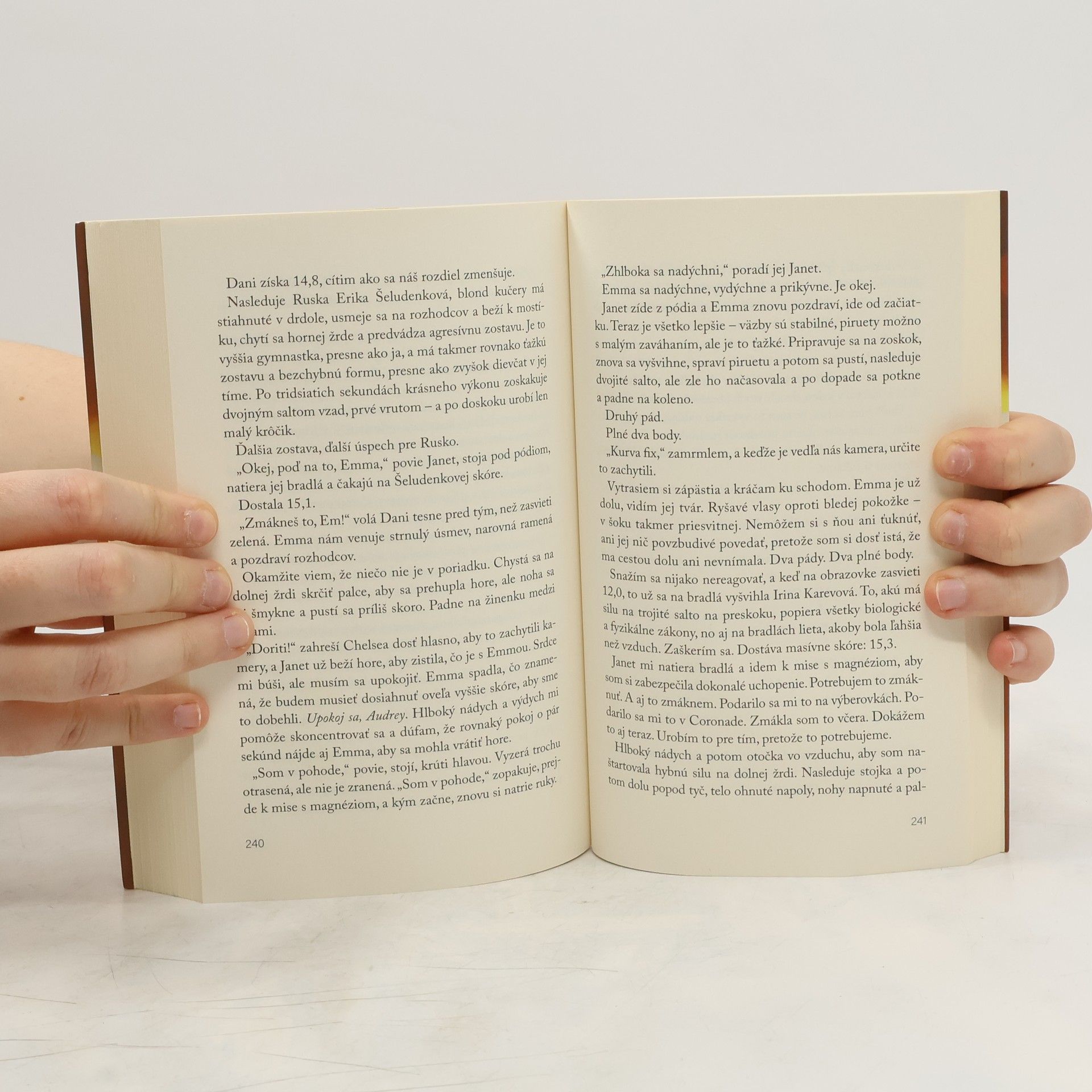 Čo všetko si ochotná urobiť pre zlatú medailu? Čo všetko si ochotná urobiť pre zlatú medailu? Nazrite za oponu tvrdého sveta gymnastiky, kde sa skrýva odvážne dievča a jeho veľký sen o zlatej medaile. Audrey je odhodlaná získať olympijské zlato. Celé roky tvrdo makala, aby sa na olympijských hrách mohla postaviť pod gymnastické bradlá a celému svetu dokázať, čo sa v nej skrýva. Zvládla všetko odriekanie, nekonečné hodiny tréningu a aj úraz chrbtice. A je presvedčená, že v tíme s najlepšou kamoškou Emmou dokáže čokoľvek. Na týchto pretekoch je však v stávke oveľa viac. Ľudia, ktorým mali gymnastky najviac dôverovať, ich zradili. Dievčatá tak spadnú do víru neuveriteľných a znepokojivých udalostí. Baby v tíme boli vždy ako druhá rodina, no teraz sa musia rozhodnúť, či budú stáť jedna pri druhej alebo im je prednejšia medaila. Audrey túži venovať viac pozornosti aj Leovi, tomu najzlatšiemu chalanovi, akého kedy stretla, no nemôže. Pretože toto je jej posledná šanca. Zvíťazí buď teraz, alebo nikdy.