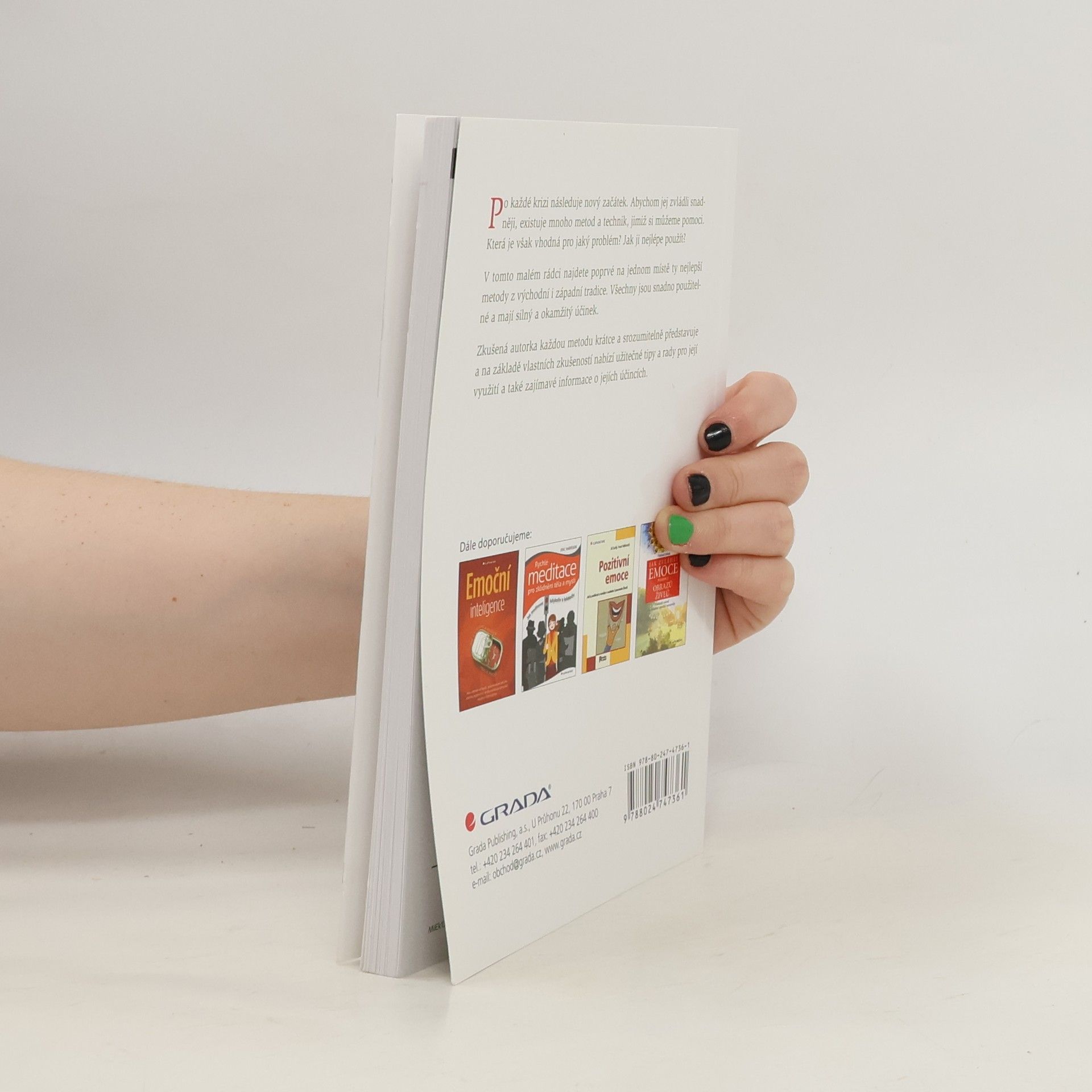 Po každé krizi následuje nový začátek. Abychom jej zvládli snadněji, existuje mnoho metod a technik, jimiž si můžeme pomoci. Která je však vhodná pro jaký problém? Jak ji nejlépe použít? V tomto malém rádci najdete poprvé na jednom místě ty nejlepší metody z východní i západní tradice. Všechny jsou snadno použitelné a mají silný a okamžitý účinek. Zkušená autorka každou metodu krátce a srozumitelně představuje a na základě vlastních zkušeností nabízí užitečné tipy a rady pro její využití a také zajímavé informace o jejích účincích.