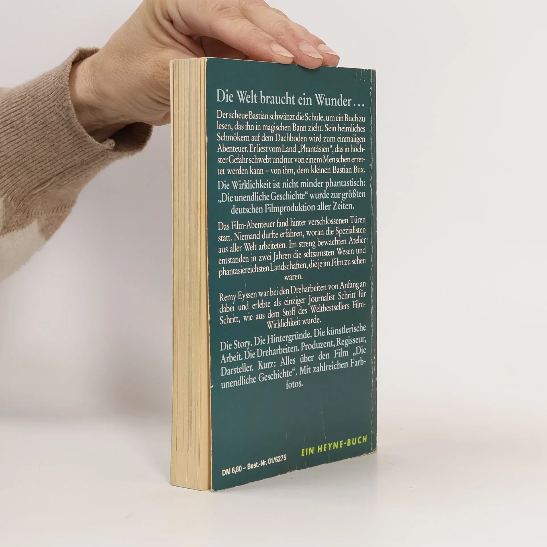 Die Welt braucht ein Wunder ... Der scheue Bastian schwänzt die Schule, um ein Buch zu lesen, das ihn in magischen Bann zieht. Sein heimliches Schmökern auf dem Dachboden wird zum einmaligen Abenteuer. Er liest vom Land "Phantásien", das in höchster Gefahr schwebt und nur von einem Menschen errettet werden kann - von ihm, dem kleinen Bastian Bux. Die Wirklichkeit ist nicht minder phantastisch: "Die unendliche Geschichte" wurde zur größten deutschen Filmproduktion aller Zeiten. Das Film-Abenteuer fand hinter verschlossenen Türen statt. Niemand durfte erfahren, woran die Spezialisten aus aller Welt arbeiteten. Im streng bewachten Atelier entstanden in zwei Jahren die seltsamsten Wesen und phantasiereichsten Landschaften, die je im Film zu sehen waren. Remy Eyssen war bei den Dreharbeiten von Anfang an dabei und erlebte als einziger Journalist Schritt für Schritt, wie aus dem Stoff des Weltbestsellers Film-Wirklichkeit wurde. Die Story. Die Hintergründe. Die künstlerische Arbeit. Die Dreharbeiten. Produzent, Regisseur, Darsteller. Kurz: Alles über den Film "Die unendliche Geschichte". Mit zahlreichen Farbfotos.
